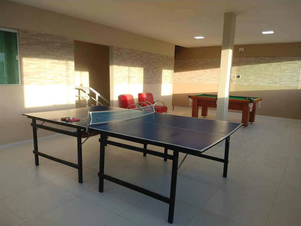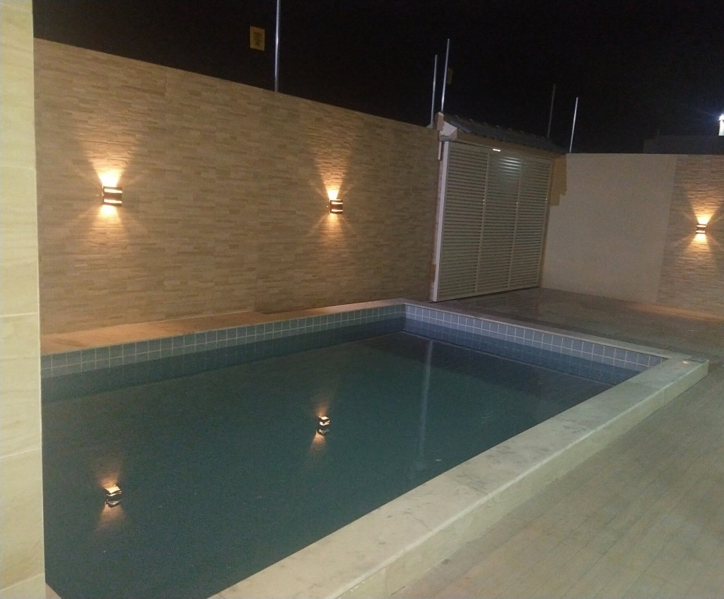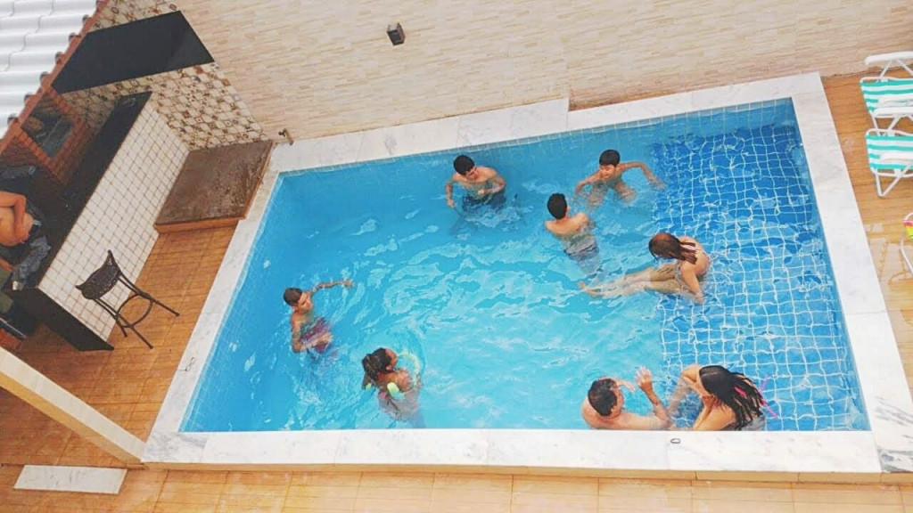 Casa com piscina e apoio com churrasqueira, 6 quartos climatizados, 6 camas de casal e 2 colchões de solteiro. Total de 7 banheiros, sendo 4 suítes, Salão de jogos com uma mesa de sinuca e uma mesa de ping pong, área total de 280m², garagem para 4 carros, sala e cozinha bastante ventiladas com dispensa e área de serviço, caseiro para manutenção da piscina e apoio aos hóspedes. Wi-fi, 02 ventiladores, liquidificador, geladeira, máquina de lavar, microondas, gelagua, fogão, cozinha completa.