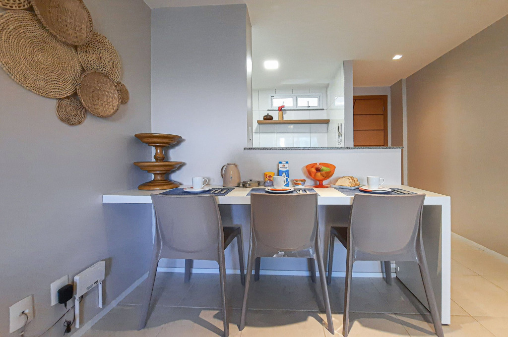 - Caso a energia não esteja inclusa na reserva, o valor será deduzido da caução mediante apresentação da foto do relógio do check-in e check-out. Recomendamos também que hóspede faça a leitura a modo de não haver divergência sobre o consumo.Apartamento no Porto Beach, vizinho do Beach Park, localizado no 1o andar, nascente. Com uma varanda com mobília, super aconchegante, para que possa aproveitar a belíssima vista da piscina, excelente para os seus dias de descanso. Acesso via fechadura eletrônica para sua comodidade. A senha é enviada próximo ao horário do check-in. São 3 quartos com ar-condicionado (sendo 2 suítes), um banheiro completo (ducha quente). Na sala de estar/jantar tem sofá retrátil, TV, bancada para refeições com 3 lugares. Cozinha completa com: geladeira duplex frost free, fogão 4 bocas, forno, sanduicheira, cafeteira, micro-ondas, bebedouro com garrafão, liquidificador e demais utensílios de cozinha, wi-fi de alta velocidade, 2 vagas na garagem e enxoval completo (cama, mesa e banho) e acomoda perfeitamente até 06 pessoas.