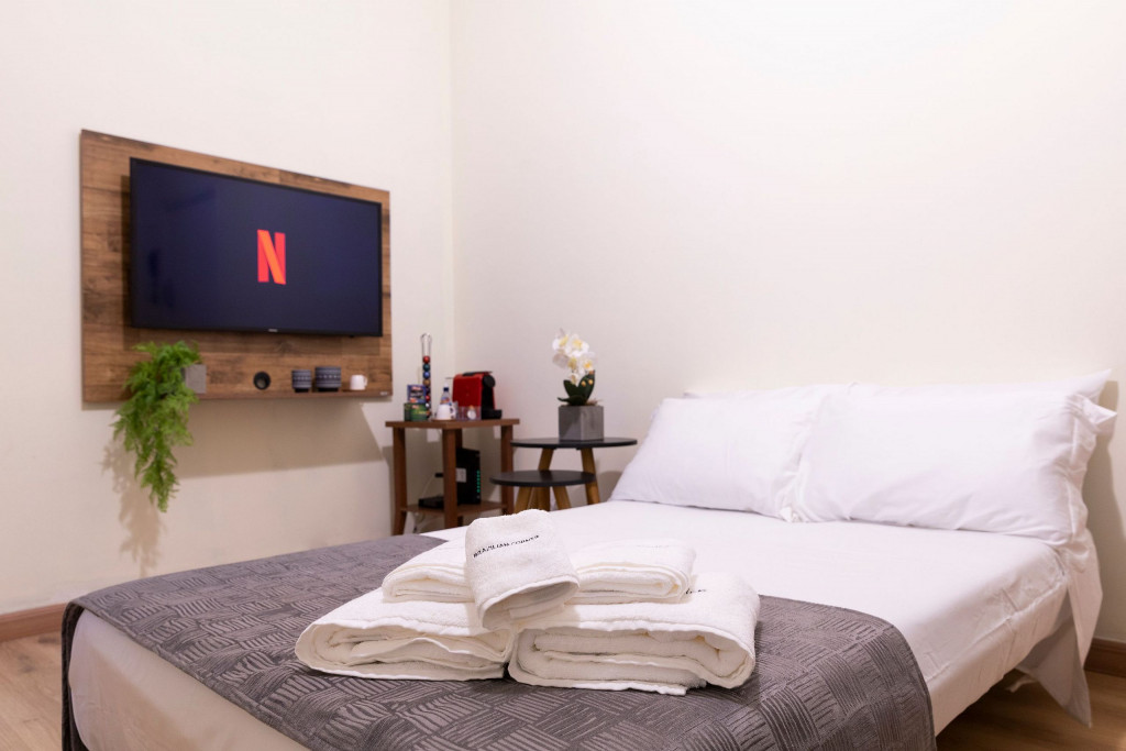 SALA: - Smart TV de 43 polegadas: Relaxe e desfrute de uma ampla variedade de entretenimento, no sofá da sala, com nossa Smart TV de alta definição. Assista aos seus filmes e programas favoritos com qualidade excepcional. - Sofá-cama: Com um simples movimento, o sofá-cama se converte em uma superfície ampla e agradável para uma noite de sono tranquila. Seus mecanismos de abertura e fechamento são fáceis de usar, permitindo uma transição suave entre as duas funções, é uma opção prática para acomodar vocês durante a noite. - Internet Ultra-Veloz: Mantenha-se conectado com o mundo durante sua estadia. Oferecemos acesso à internet de alta velocidade para que você possa compartilhar suas experiências e manter-se atualizado em todos os ambientes. - Mesa de Jantar para 4 pessoas: Compartilhe momentos especiais com amigos e familiares em torno de uma mesa espaçosa e elegante. Nossa mesa de jantar comporta até 4 pessoas, proporcionando um ambiente perfeito para refeições memoráveis. - Fechadura Digital: Priorizamos sua segurança e tranquilidade. Nossa locação conta com uma fechadura digital de alta tecnologia, proporcionando praticidade e evitando a preocupação com chaves. QUARTO: Cada quarto em nossos imóveis são cuidadosamente decorados e mobiliados, oferecendo conforto e privacidade para todos os inquilinos. - Cama Queen Size: Relaxe e recarregue suas energias em uma cama queen size confortável. Garantimos noites tranquilas e revigorantes para que você possa aproveitar ao máximo cada segundo de seu sono. - Ar condicionado: Mantenha-se fresco e confortável durante toda a sua estadia. Nosso imóvel possui ar condicionado para garantir uma temperatura agradável. COZINHA: Nossa cozinha está muito bem equipada. Prepare deliciosas refeições na nossa cozinha completa e moderna. Equipada com todos os utensílios e eletrodomésticos necessários, você terá liberdade para explorar suas habilidades culinárias. - Taças de vinho: Brinde momentos memoráveis com taças de vinho prontas para receber suas celebrações. - Fogão: Sinta-se em casa na nossa cozinha, completa com um moderno fogão, proporcionando a flexibilidade para preparar suas refeições favoritas. Seja um mestre culinário ou alguém que gosta de experimentar novos sabores, você terá tudo o que precisa à sua disposição. - Forno: Se você adora cozinhar e desfrutar de refeições deliciosas, você vai se encantar com nossa cozinha equipada com um moderno forno. Deixe sua criatividade culinária fluir enquanto prepara pratos incríveis. Desfrute de refeições caseiras deliciosas e aconchegantes sem abrir mão do conforto. - Microondas: Prepare suas refeições com praticidade e rapidez, tendo à disposição um micro-ondas moderno e funcional. - Máquina Nespresso: Desperte seus sentidos com uma xícara de café fresco todas as manhãs. Em nossa locação, disponibilizamos uma máquina Nespresso para que você possa apreciar a sua bebida preferida. No entanto, é necessário trazer suas próprias cápsulas de café, pois não fornecemos. - Filtro de Água: Pensando na sua saúde e bem-estar, nossa locação por temporada possui um filtro de água, garantindo que você tenha acesso a água limpa e pura durante toda a sua estadia. BANHEIRO: - Secador de Cabelo: Para sua conveniência, disponibilizamos um secador de cabelo de qualidade em nosso imóvel. Dessa forma, você não precisa se preocupar em trazer o seu, permitindo que você viaje mais leve e confortável. - Chuveiro à Gás: Proporcionando conforto em todos os detalhes, nossos chuveiros são abastecidos com sistema a gás, garantindo um banho quente e relaxante em qualquer momento do dia. - Ducha Higiênica: Desfrute do conforto e praticidade de uma ducha higiênica em nosso imóvel. Um toque de modernidade e higiene para garantir que sua estadia seja ainda mais agradável. ÁREAS COMUNS: - Vaga de garagem: Oferecemos uma vaga de garagem para veículos pequenos, garantindo que você tenha um local seguro para estacionar seu veículo. ADMINISTRAÇÃO DO IMÓVEL: O Imóvel é administrado pela Brazilian Corner, uma empresa nacional que oferece aos seus clientes, que viajam a lazer ou negócios, a experiência de locar imóveis únicos durante uma temporada. As residências são planejadas para prover grande conforto. Nosso escritório fica no bairro Vila Madalena em São Paulo. Desde 2018, a Brazilian Corner é pioneira em seu ramo, pois além de proporcionar imóveis bem estruturados, também é responsável por toda a logística e suprimentos básicos que compõe cada uma de suas residências, o que as torna extremamente funcionais. Nosso grande diferencial é a boa comunicação e a seriedade com que atuamos para resolver qualquer entrave que possa acontecer antes, durante, e/ou após a estadia de nossos clientes. Nossos colaboradores são treinados e têm as ferramentas necessárias para proporcionar um excelente nível de serviço. Os apartamentos e casas são limpos por nossas equipes especializada, a nossa roupa de cama e banho são lavadas e higienizadas em lavanderias profissionais. Mantemos o profissionalismo em tudo o que fazemos para, dessa forma, garantir a tranquilidade e confiança de nossos clientes. COMPROMISSO COM A INCLUSÃO: Na Brazilian Corner, acreditamos que a diversidade é o que torna o mundo um lugar incrível para explorar. Celebramos a pluralidade de culturas, identidades e experiências de vida. Para a comunidade LGBTQIA+, este é um lar longe de casa, onde você pode ser autêntico e verdadeiro consigo mesmo, onde a diversidade é celebrada e a igualdade é nossa prioridade. Sabemos que viajar nem sempre é fácil, e queremos tornar a sua estadia o mais confortável possível. Não importa se você é um viajante solo, um casal ou um grupo de amigos, este espaço foi projetado com amor para receber a todos, independentemente de sua orientação sexual, identidade de gênero ou expressão. Este é o seu esp