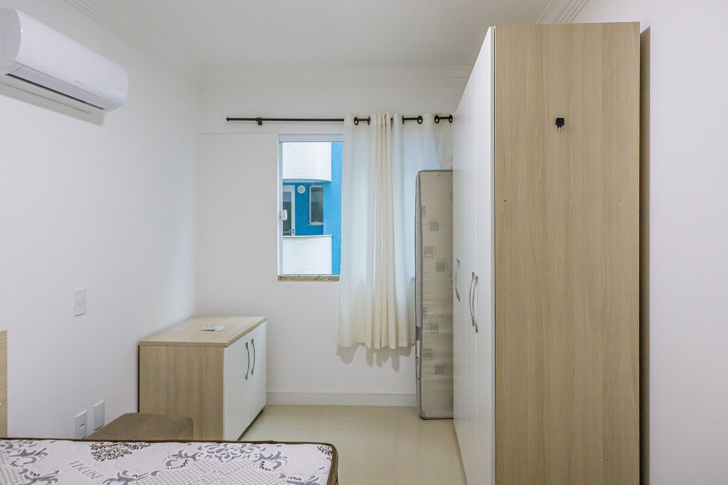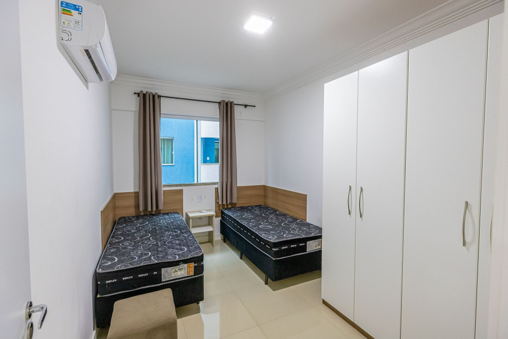 01 Dormitório com duas camas de solteiro, guarda roupas 4 portas, ar condicionado Split;