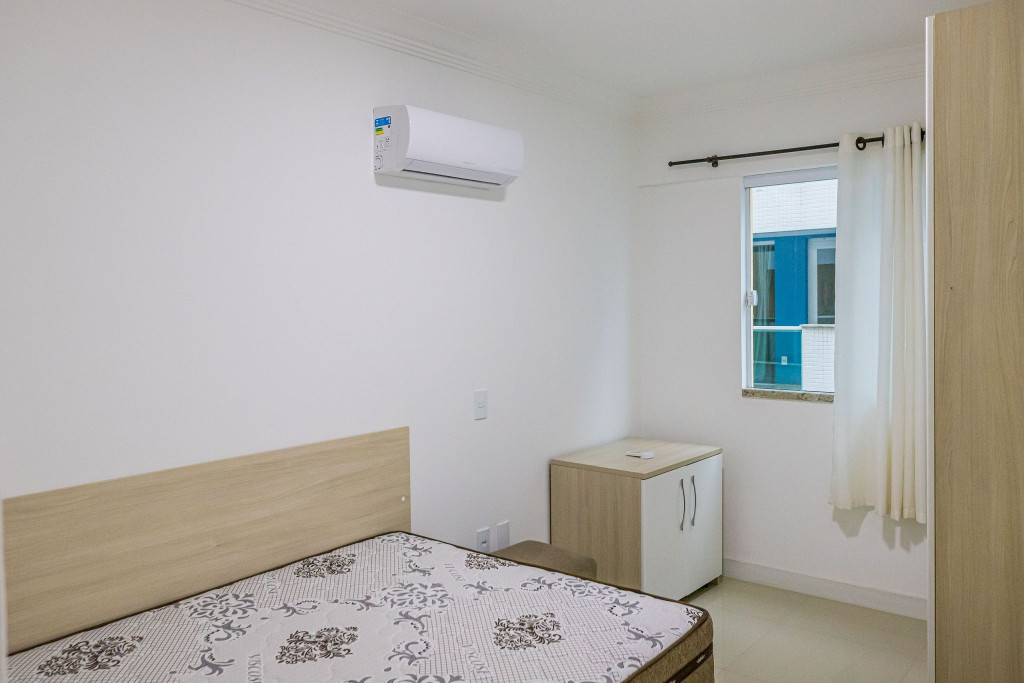 01 Suíte com cama de casal bem confortável, guarda roupas 4 portas, ar condicionado Split;