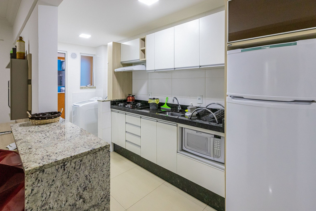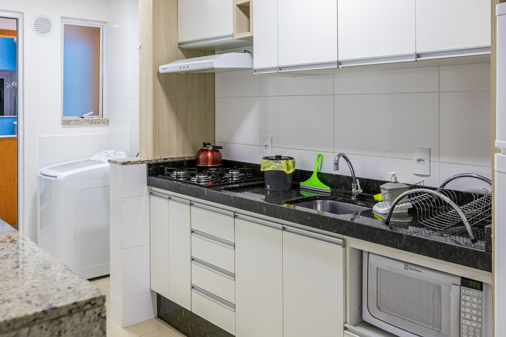 Cozinha equipada com todos utensílios e eletrodomésticos (Geladeira, microondas, Cooktoop, cafeteira, torradeira, liquidificador);