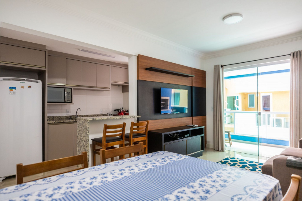 Apartamento muito bem localizado. Você poderá fazer tudo a pé, inclusive supermercado. Localizado a 400m da praia em frente ao mercado Schmitd.