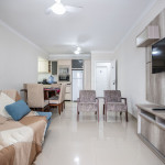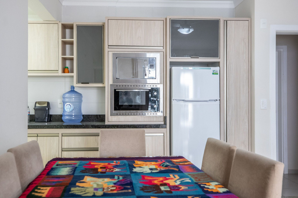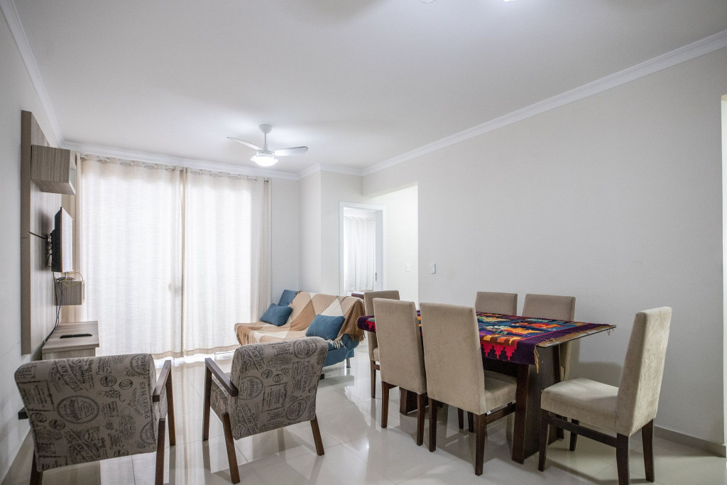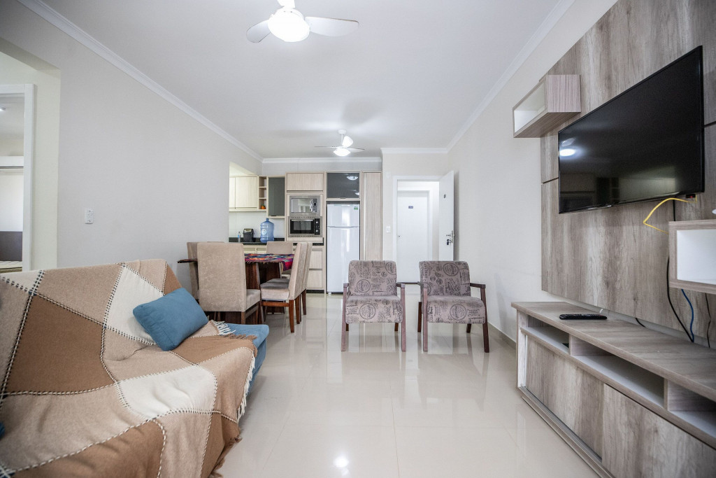 Apartamento aconchegante à 350m do mar. Muito bem localizado e com uma linda varanda fechada com churrasqueira.- Sala de tv e de jantar integradas- 2 quartos amplos, sendo 1 suite com ar condicionado, 1 com cama king e ar condicionado- Sofa cama- Área de serviço com maquina de lavar e tanque- Cozinha completa: geladeira, forno, microondas.O predio possui elevador, e vaga na garagem, para maior conforto e comodidade. Wi-fi cortesia.Hospede-se conosco e aproveite o melhor das férias!