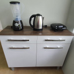 Acomodação exclusiva com 2 quartos, 1 banheiro e cozinha equipada com geladeira, micro-ondas, cooktop elétrico, liquidificador, sanduicheira, panelas, frigideira e demais utensílios básicos.
