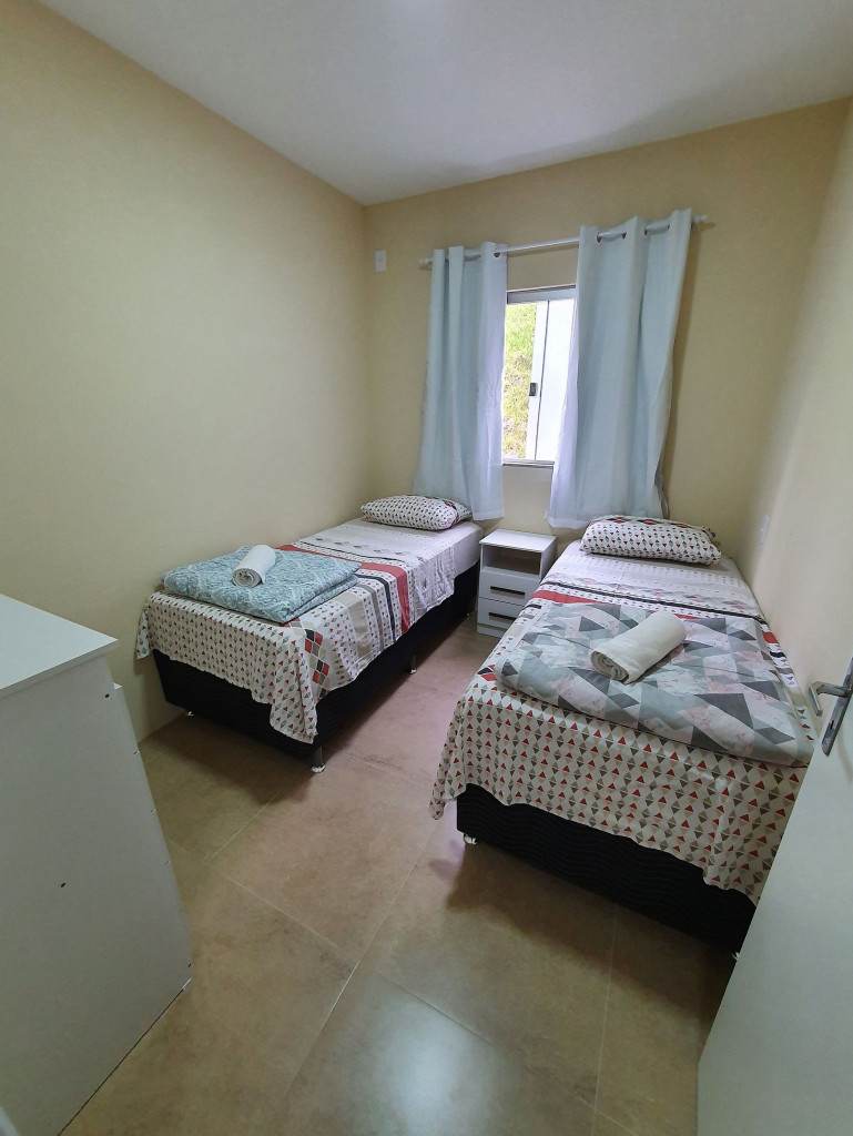 Acomodação exclusiva com 2 quartos, 1 banheiro e cozinha equipada com geladeira, micro-ondas, cooktop elétrico, liquidificador, sanduicheira, panelas, frigideira e demais utensílios básicos.
