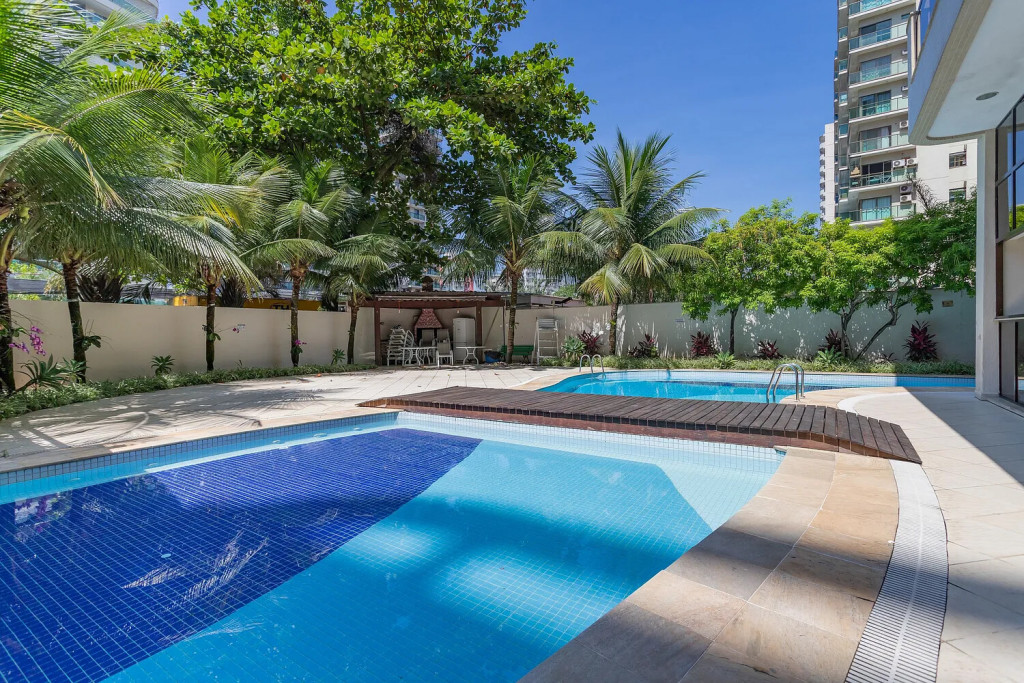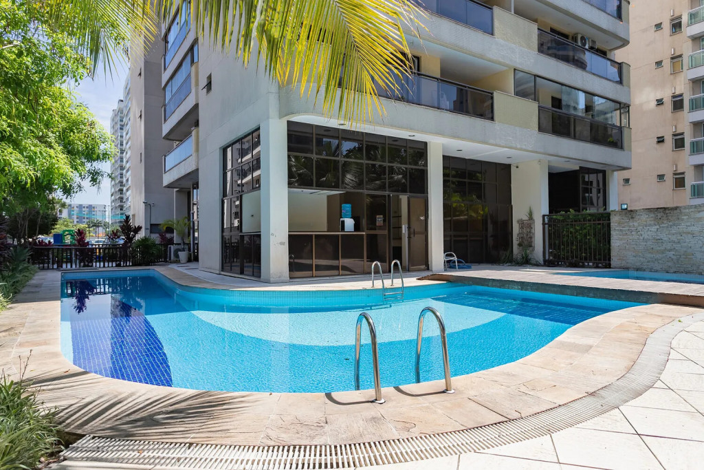 Prédio de ótimo nível com piscina, estacionamento, área de lazer. Apto com ar nos quartos , wi fi 240 mega, NET, varanda deliciosa, cozinha completa. Numa localização privilegiada, em frente ao Parque Olimpico, Jeunesse Arena, perto do RioCentro, ao lado de restaurantes, mercados, farmácias, Hortifruti, faz tudo a pé.