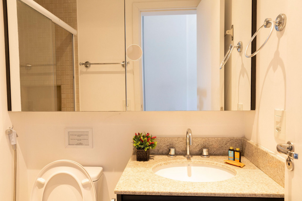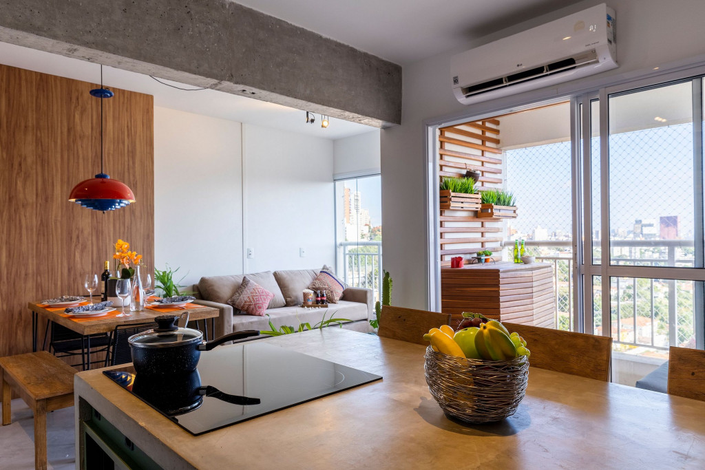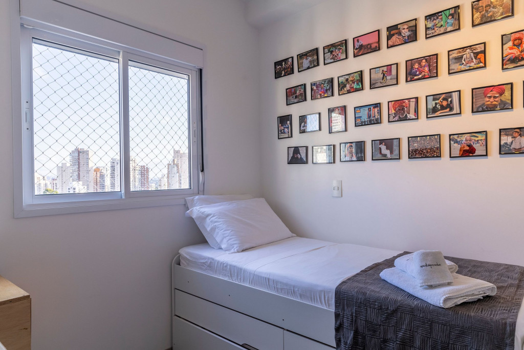 - Varanda com vista para a cidade: Desfrute de uma paisagem deslumbrante de São Paulo. Imagine acordar todas as manhãs e aproveitar de sua varanda a beleza desta cidade. Além de contar com rede de proteção para uma estadia segura com seu Pet ou com crianças.