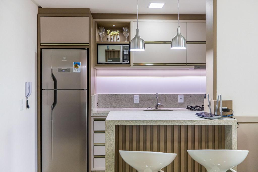 - Geladeira, Micro-ondas, Fogão.