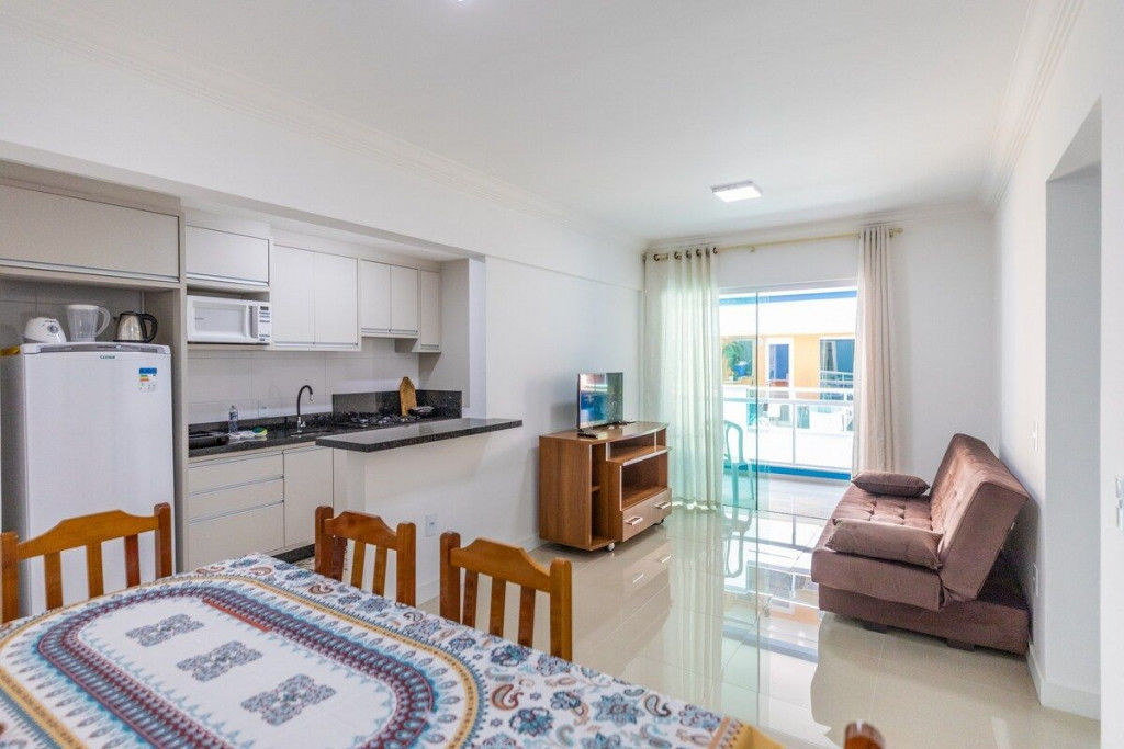 Apartamento muito bem localizado. Você poderá fazer tudo a pé, inclusive supermercado. Localizado a 400m da praia em frente ao mercado Schmitd.