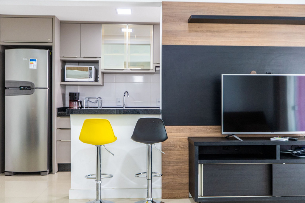 - Geladeira, Micro-ondas, Fogão.