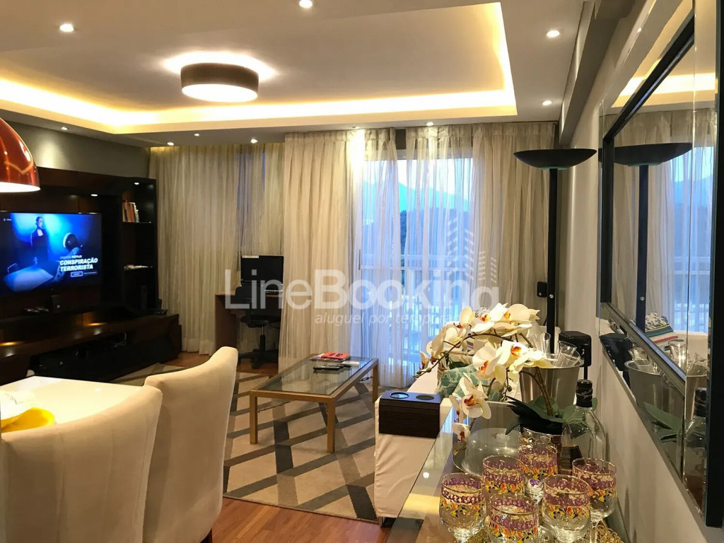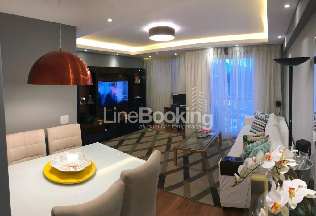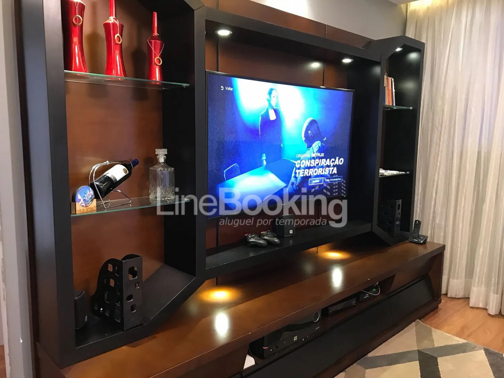 Sala: Sofá 04 lugares, Mesa de Jantar 04 Lugares , TV Curve 46 4K,, Mesa de Centro, Computador, Home Theater, Aparador/Bar, Ar Condicionado Split 12 Btus, Xbox 360.