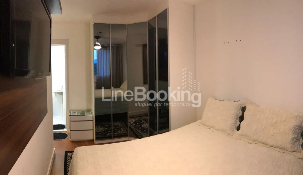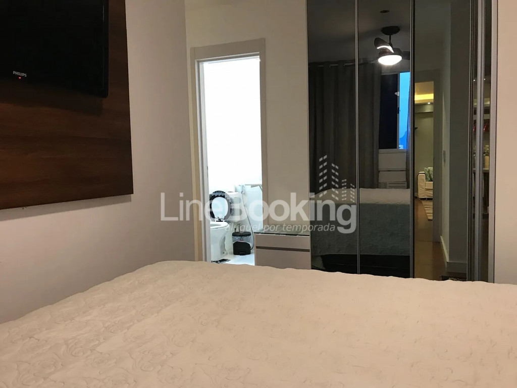 Suíte: Cama de casal (queen), ar condicionado, armário planejado, Ventilador de Teto, Tv LCD, Criado Mudo.