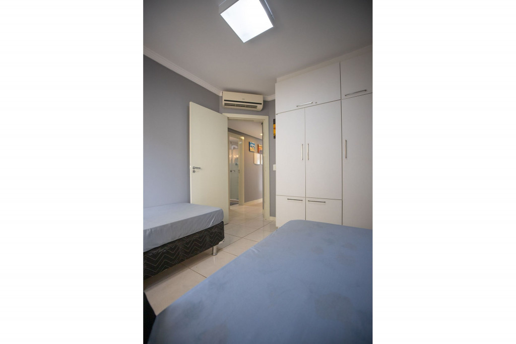 Apartamento aconchegante, de 3 quartos a 400m do mar!Contamos com uma suíte, um quarto com cama de casal e um quarto com duas camas de solteiros equipados com ar condicionado.O apartamento possui uma linda varanda fechada com churrasqueira, para aqueles momentos de maior descontração com sua familia. Contamos com uma cozinha completa, sala de TV e jantar integradas, área de serviço com máquina de lavar roupas e tanque.O prédio possui garagem e elevador e Wi-fi cortesia.Desfrute conosco!