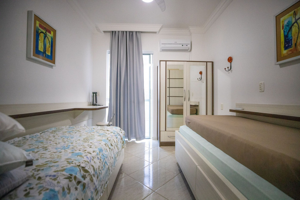 Lindo apartamento de 3 quartos a apenas 80m do mar!O apartamento possui uma varanda fechada com churrasqueira para aqueles momentos de celebração em família.- 1 suíte com cama de casal e um sofá-cama de casal, 1 quarto com duas camas de solteiro e um futon, e 1 quarto com cama de casal, todos com ar condicionado.- Cozinha completa- Secadora de roupasO prédio possui elevador e garagem para maior segurança e comodidade.Venha passar o melhor de suas férias conosco!