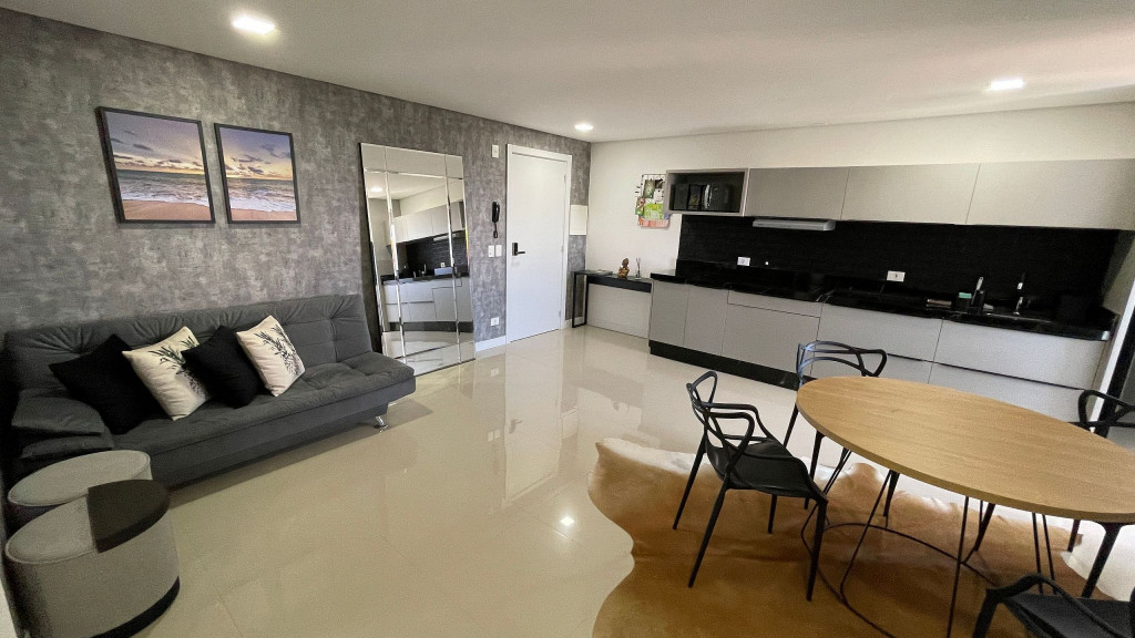 Dispõe de Vaga de garagem coberta no prédio, wi-fi, sofá retrátil, quarto com cama de casal Queen, armários, banheiro com ducha elétrica, cozinha equipada, fechadura eletrônica com senha para acesso ao apt. Estou sempre a disposição para tirar dúvidas, passar informações ou solucionar problemas que possam surgir de última hora, tanto com o apto quanto com a viagem do hóspede como um todo. Essa região do centro de Foz é simplesmente incrível! O prédio fica em uma rua paralela à avenida principal, Jorge Schimmelpfeng, o que torna o acesso aos bares e restaurantes fácil ao mesmo tempo que confere tranquilidade à rua do prédio. Os melhores bares e restaurantes da cidade estão a poucos minutos, além de farmácias e um mercado também próximo. Além de tudo isso, tem uma padaria bem ao lado do prédio! Há uma quadra da Avenida Jorge Schimmelpfeng, onde passa ônibus para todos os pontos turísticos e terminal. Próximo a ponto de taxi. A cidade dispõe de diversos aplicativos de transporte.