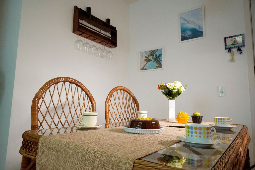 Apartamento com 2 anos de uso, piso vinílico na sala e quartos.Redes de proteção nas janelas.Wi-fi em toda a propriedade.Acessórios de praia.Estamos localizado a 850 metros da praia da Martim de Sá e a 850 metros da Prainha.