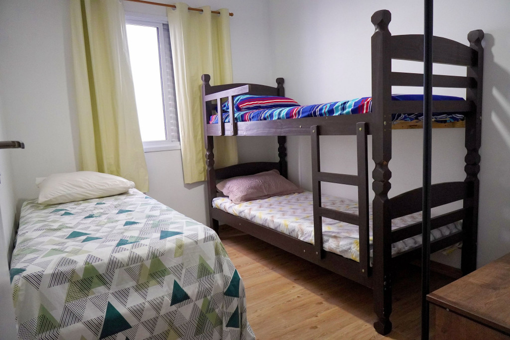 Apartamento com 2 anos de uso, piso vinílico na sala e quartos.Redes de proteção nas janelas da sala e dos quartos.Sala de estar, com sofá cama, TV Smart com Netflix, , Wi-fi em toda a propriedade, jogos de tabuleiro.Sala de jantar com mesa e cadeiras, taças para vinho e gin.Quartos com travesseiros e colchões com capas protetoras - (Quarto 1 - Cama de casal, guarda roupas, ferro de passar roupas, kit costura, ventilador de teto) (Quarto 2 - Cama box de solteiro, Beliche e colchão avulso, guarda roupas, ventilador de teto). NÃO DISPONIBILIZAMOS ROUPAS DE CAMA E BANHO.Cozinha completa, com utensílios (Panelas, Pratos, Talheres, Copos) e eletrodomésticos (Microondas, Freezer, Lancheira, Fogão, Forno, Liquidificador).