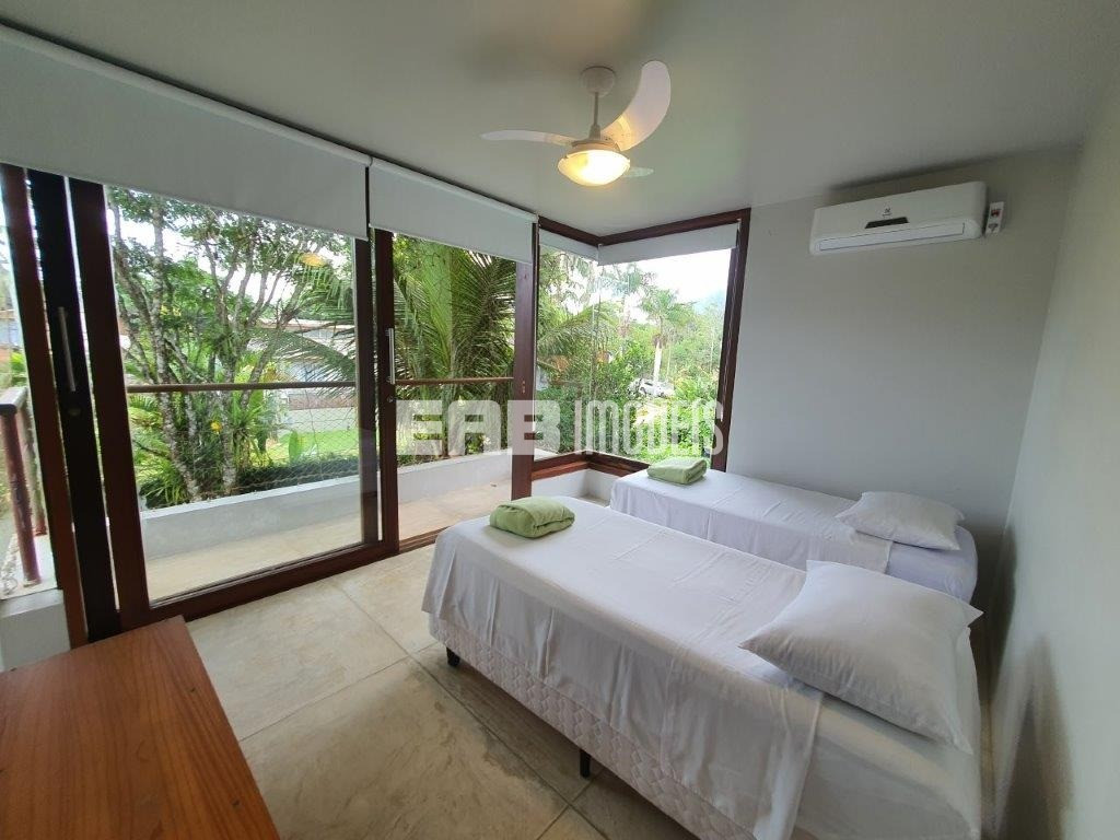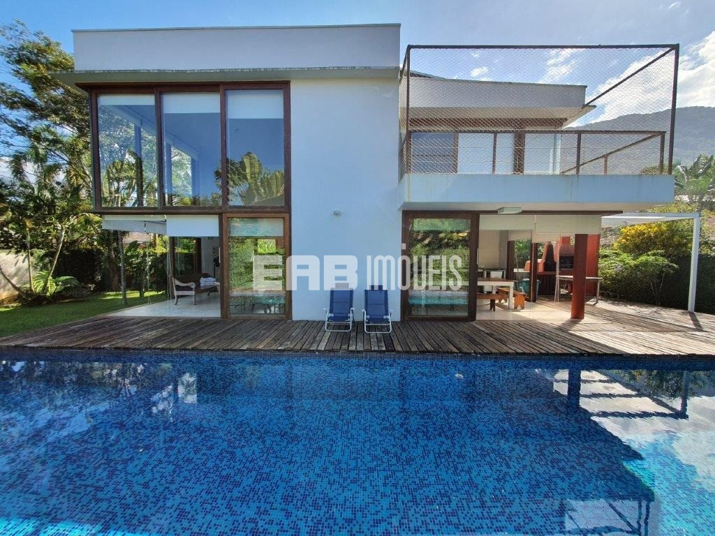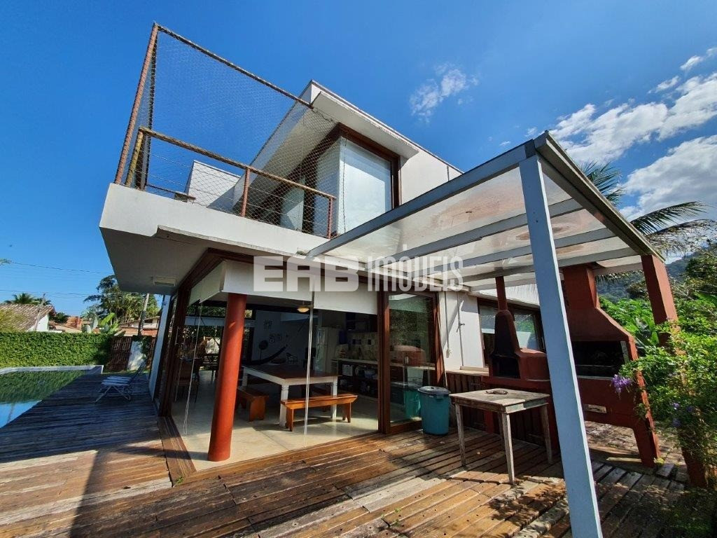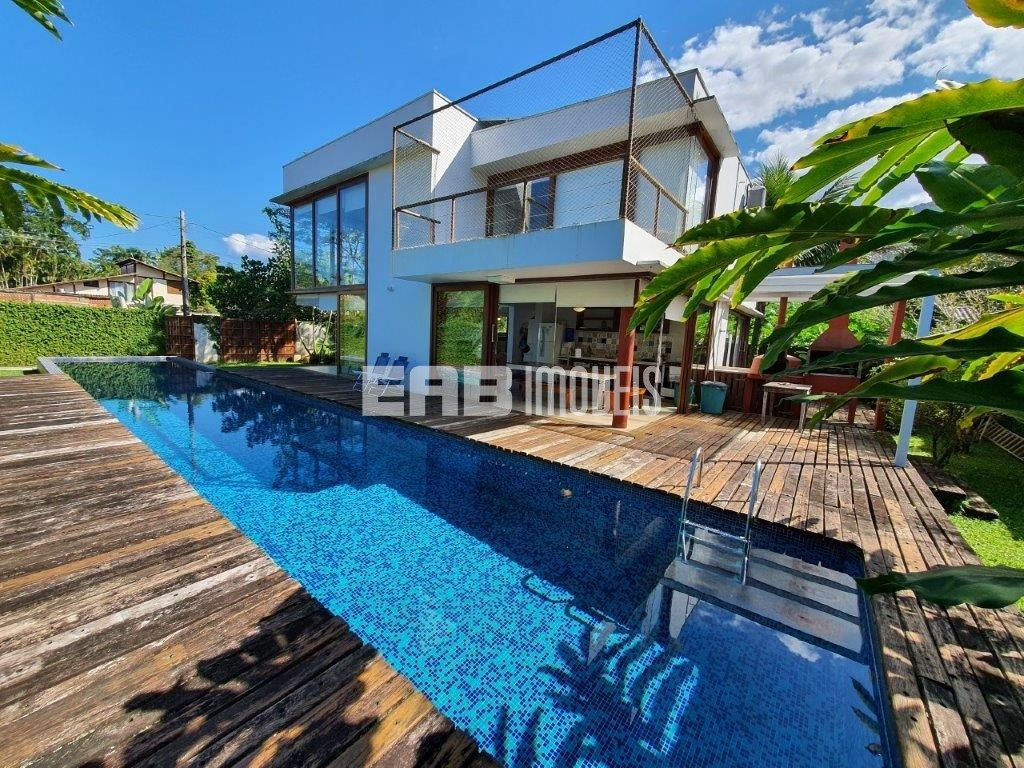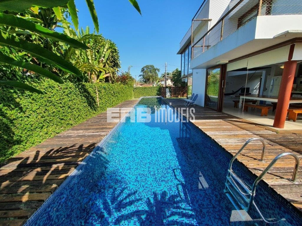 Belíssima casa! Ampla, iluminada, prática. A apenas 100m da praia de Itamambuca, destaca-se pela área de convivência, que começa na ampla sala de vidro e se estende até o deck. Sala com lareira, piscina com raia de 20m, aquecimento solar nos chuveiros, janelas com proteção de segurança para crianças. Cozinha planejada e espaço gourmet.