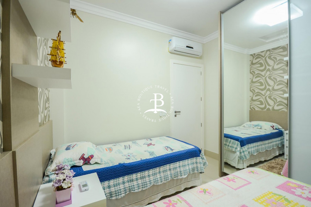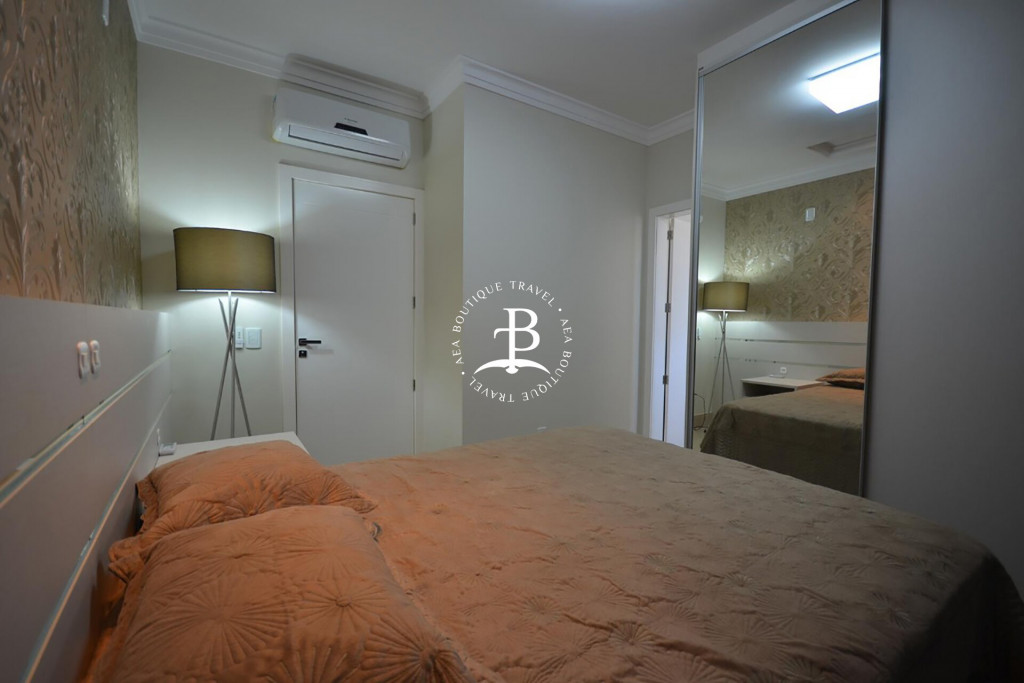 As comodidades extras incluem ‘internet’ Wi-Fi como cortesia (sujeito a oscilações e indisponibilidade), máquina de lavar roupas, 04 ar condicionado Split e estacionamento privativo gratuito com 2 vagas de garagem. Configuração dos quartos: quarto 1: Suíte com 1 cama de casal tamanho Queen size. Quarto 2: com 1 (cama) tamanho King. Quarto 3: com 2 camas de solteiro (reversível). O imóvel comporta em camas até 06 convidados e 2 crianças extra em colchão como cortesia sem taxa adicional.