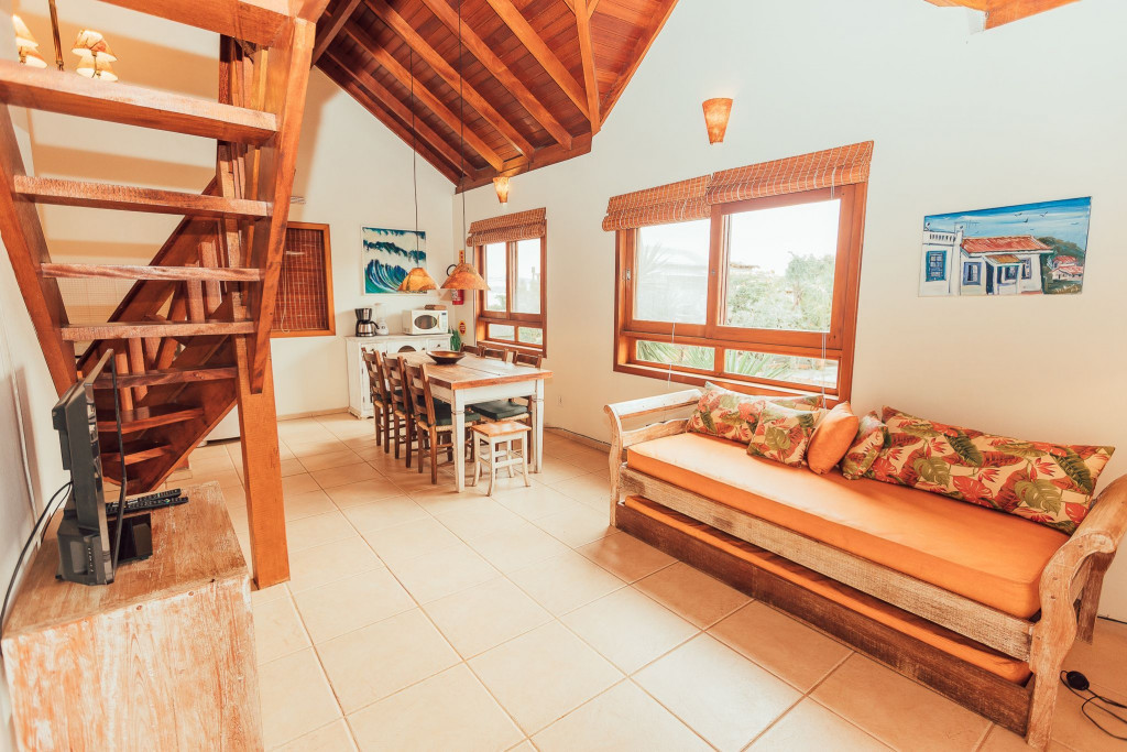 Ambientes aconchegantes, com decoração apropriada ao clima praiano, com uma elegância levemente rústica, em cores suaves. Um eterno clima de férias, com cenário verdadeiramente mágico em que o visitante poderá se emocionar com o céu hora azul, hora cor-de-rosa.