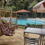Churrasqueira individual na área do quintal que fica virado para a área da piscina.
