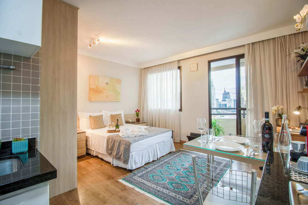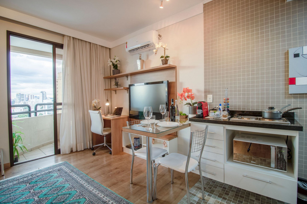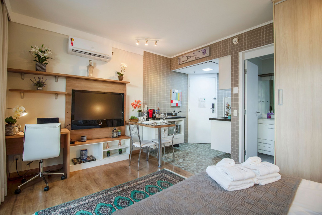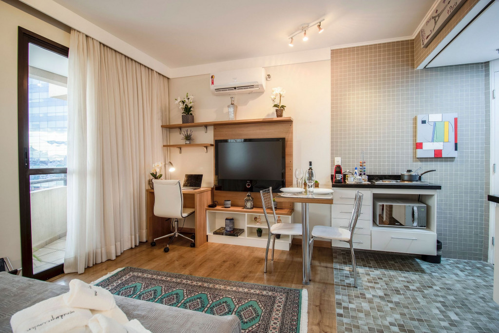 O estúdio aconchegante fica localizado em Pinheiros, no Quality Hotel, a apenas 450m da estação de metrô Faria Lima (Linha 4 - Amarela). Situado em um bairro nobre e cultural, oferecendo o espaço ideal para uma estadia na cidade de São Paulo. Conta com Smart TV, ar condicionado, mesa de trabalho, mesa de jantar, chuveiro a gás, e uma cozinha completa com todos os utensílios necessários. Além disso, o prédio conta com academia, piscina, sauna, restaurante e vaga de garagem com manobrista.