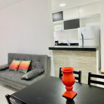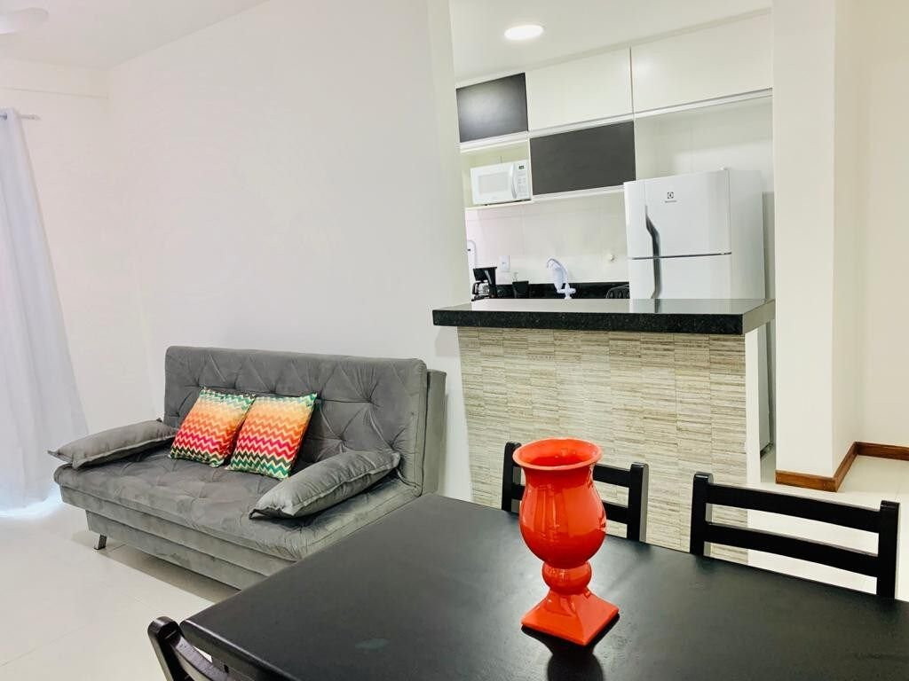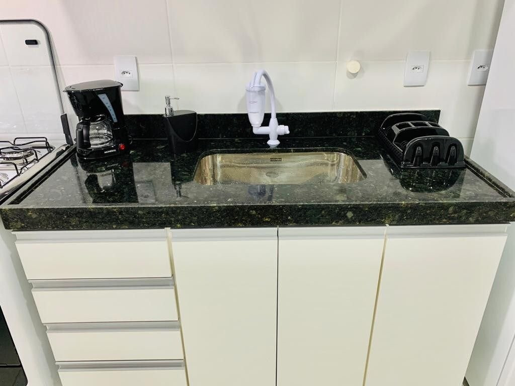 O apartamento é composto por uma enorme varanda, sala com 2 ambientes, suíte completa (1 quarto com banheiro), cozinha totalmente equipada e lavabo. Oferecemos uma vaga de garagem no prédio com portão automático e WI-FI disponível em todo o apartamento.