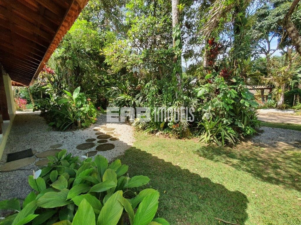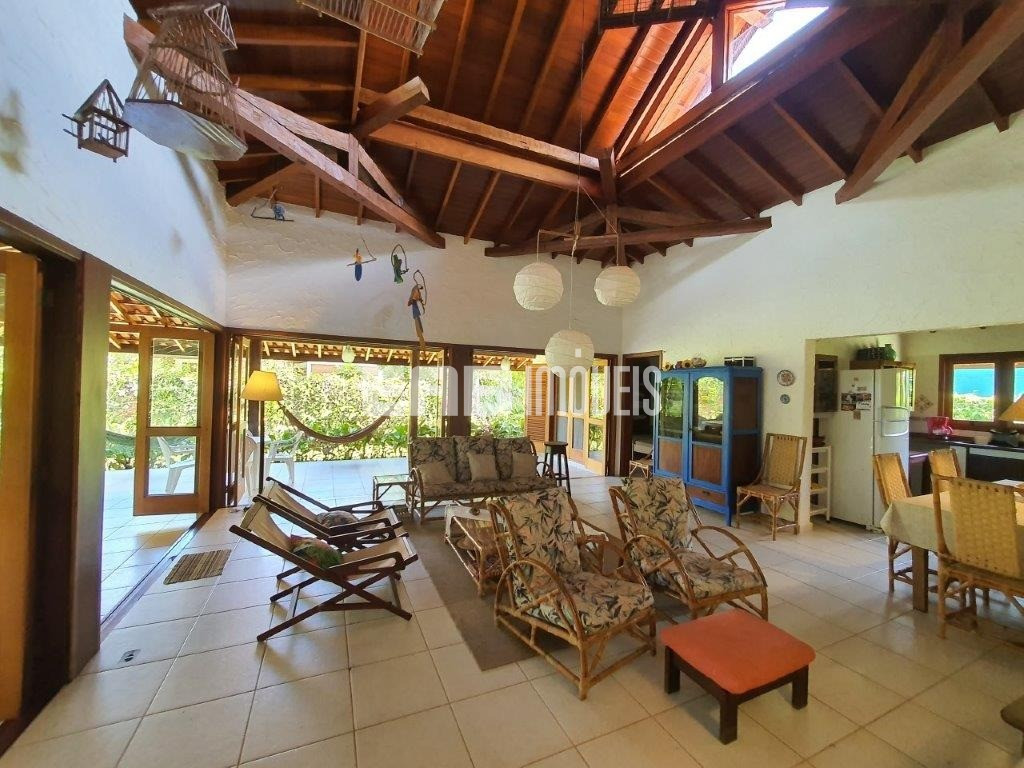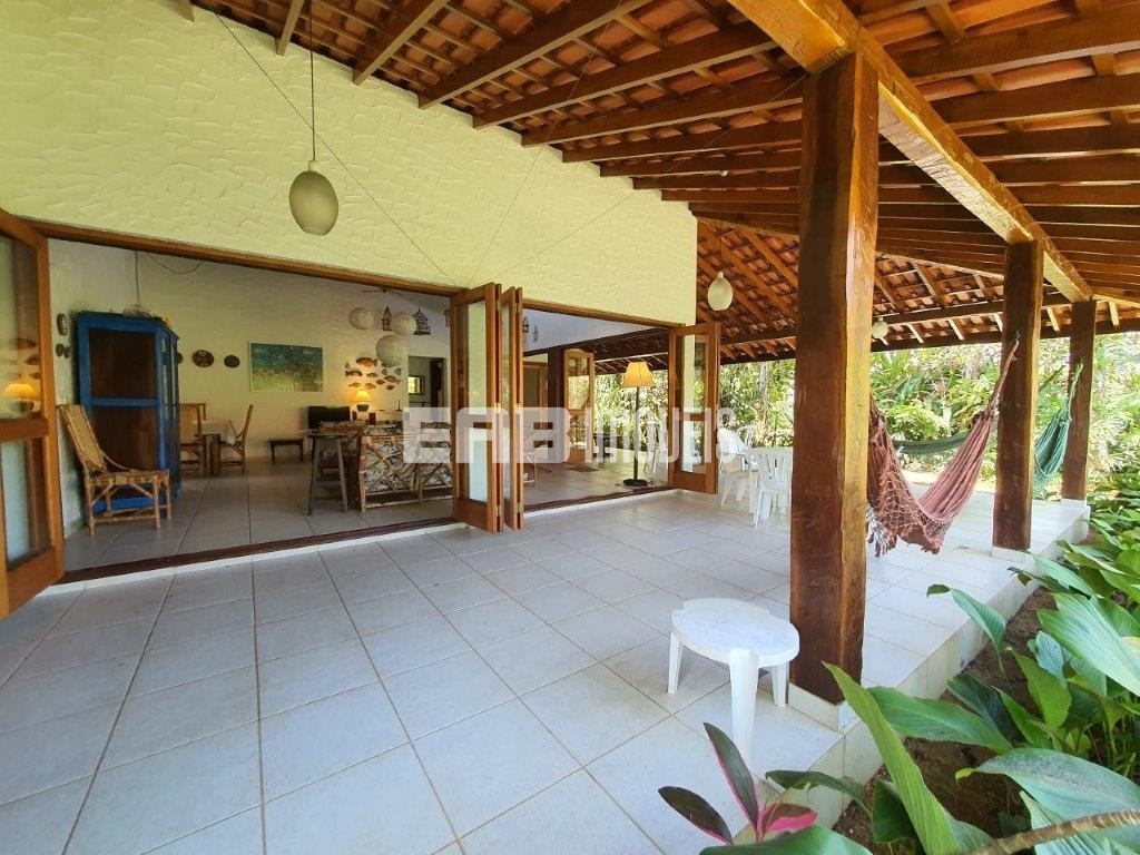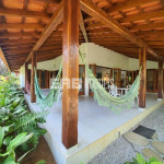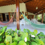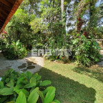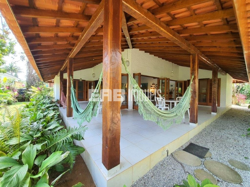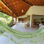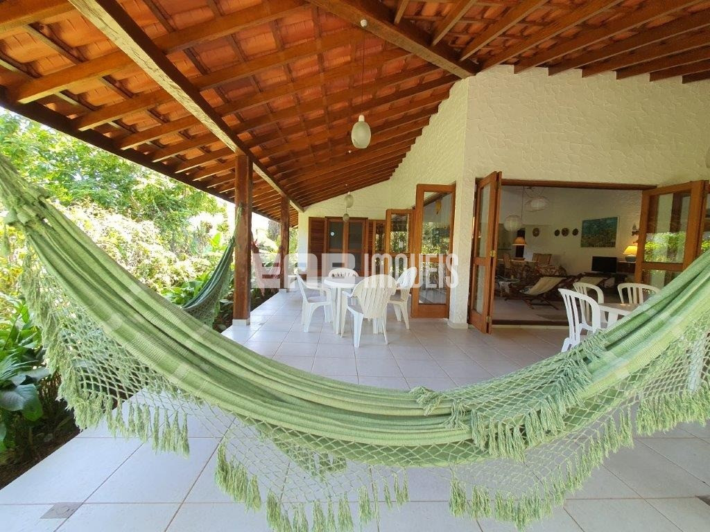 Agradável casa de praia, em frente à área verde, com ampla varanda, aberta para o jardim. Projeto arquitetônico integrado à vegetação.