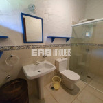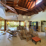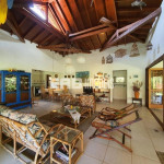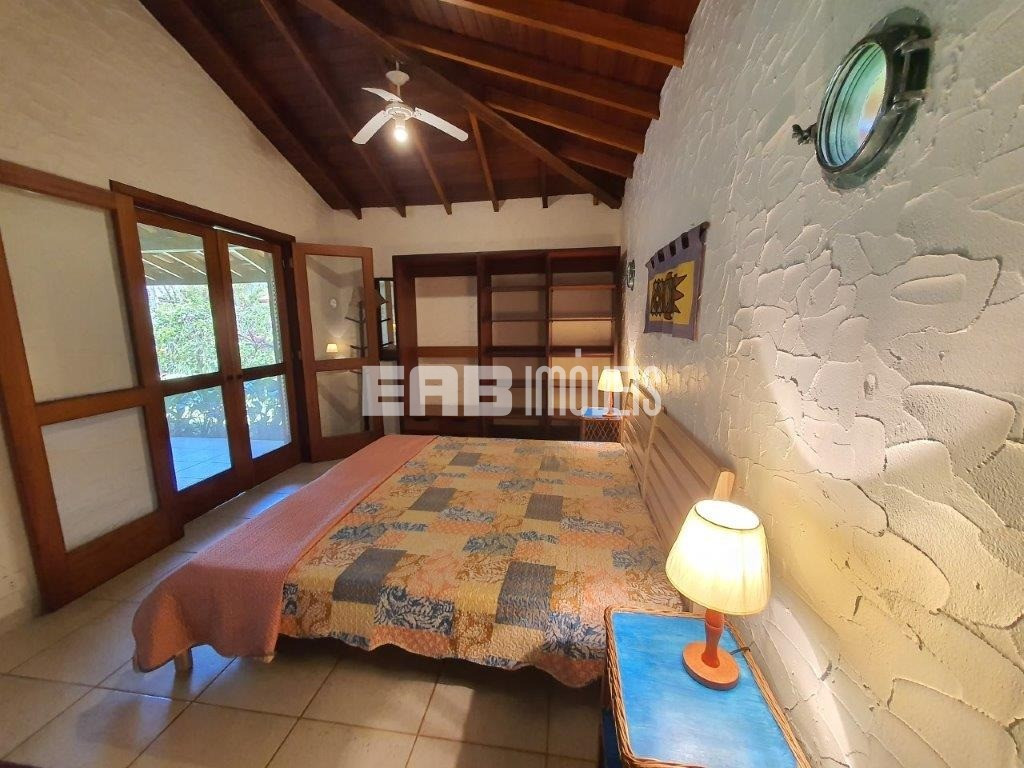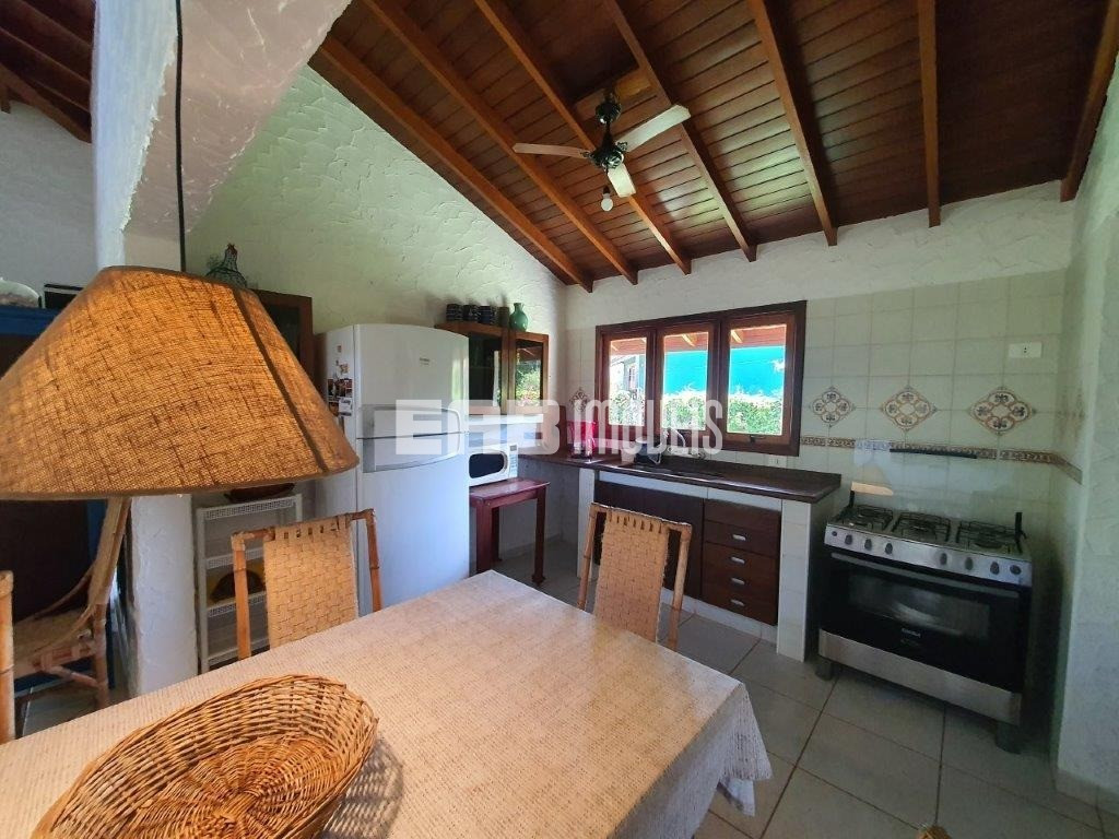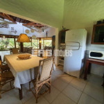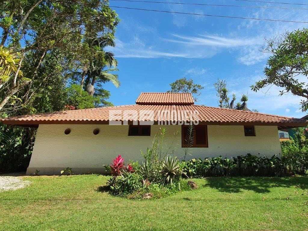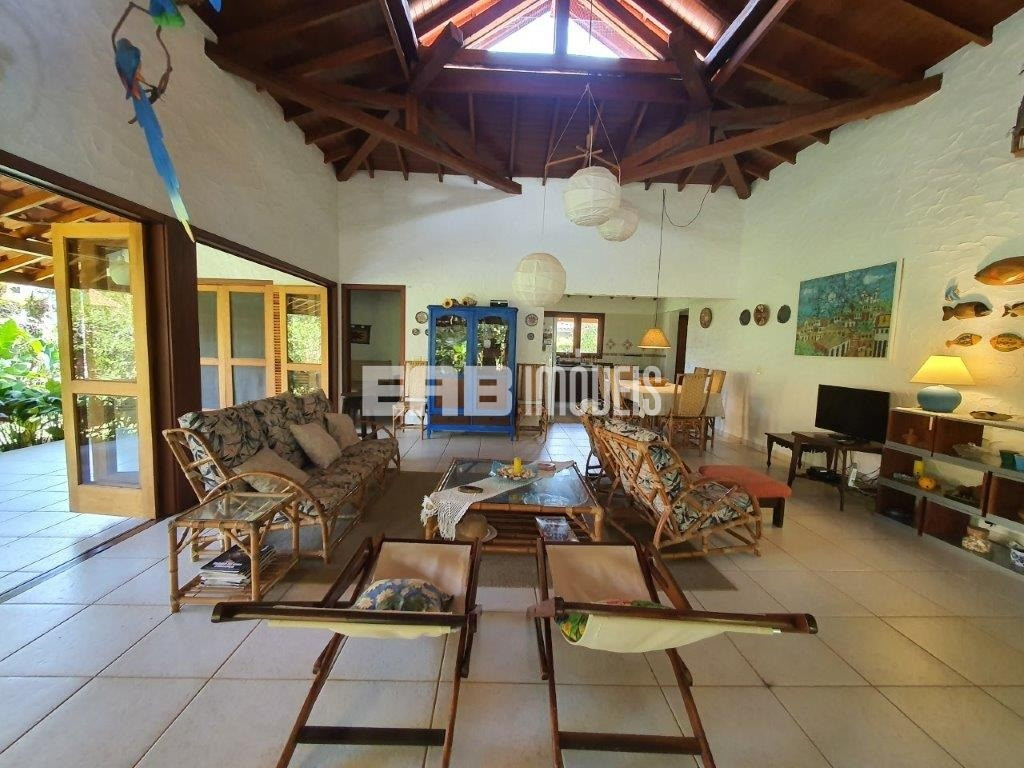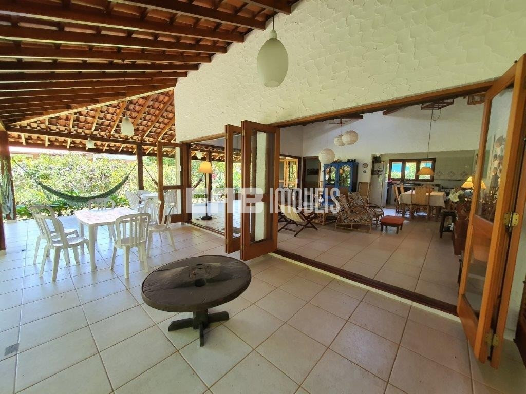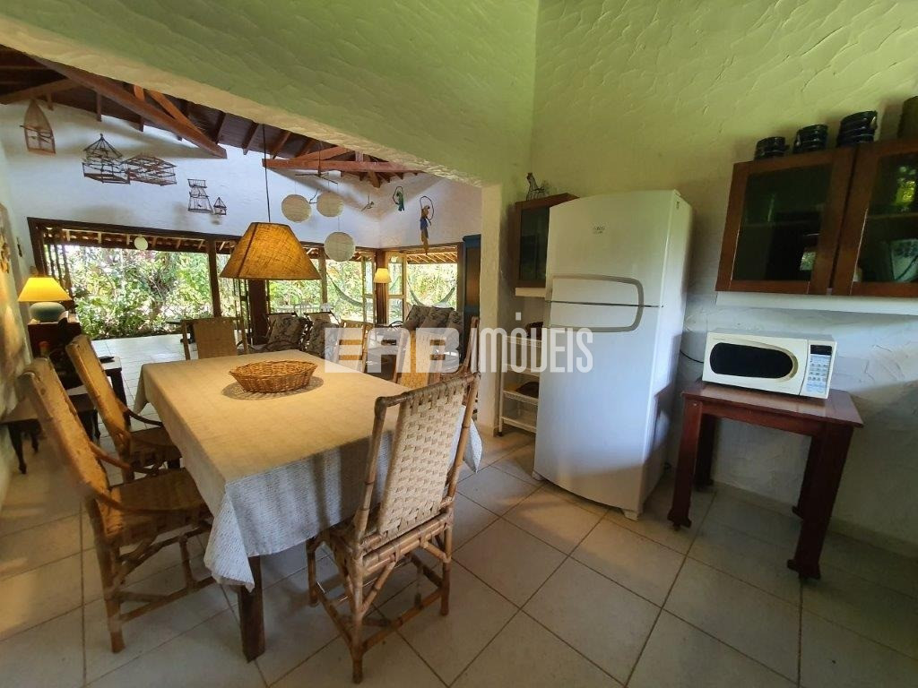 Agradável casa de praia, em frente à área verde, com ampla varanda, aberta para o jardim. Projeto arquitetônico integrado à vegetação.