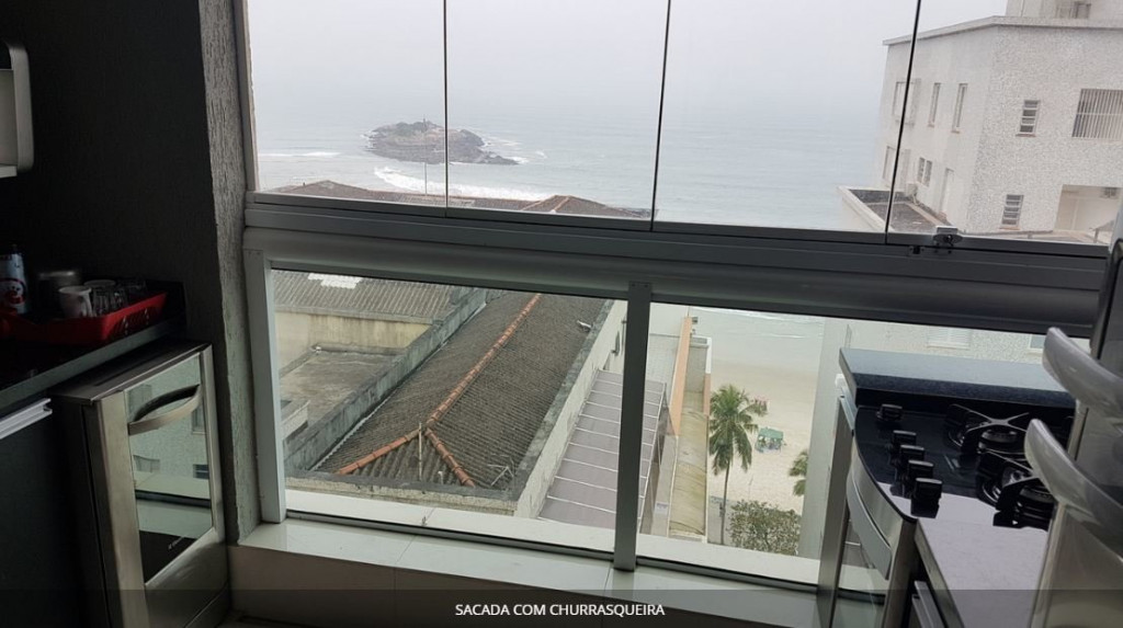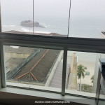 SALA COM SACADA GOURMET E VISTA AMPLA AO MAR.