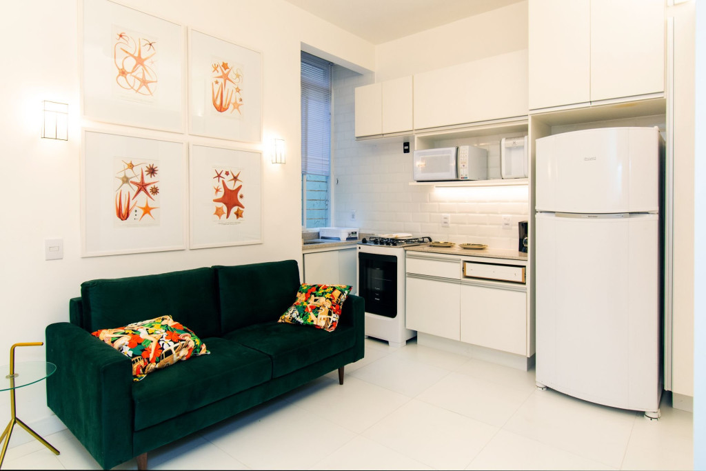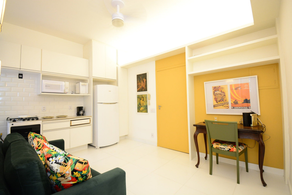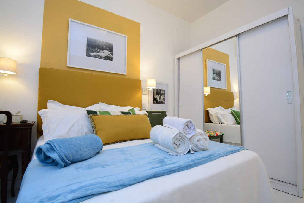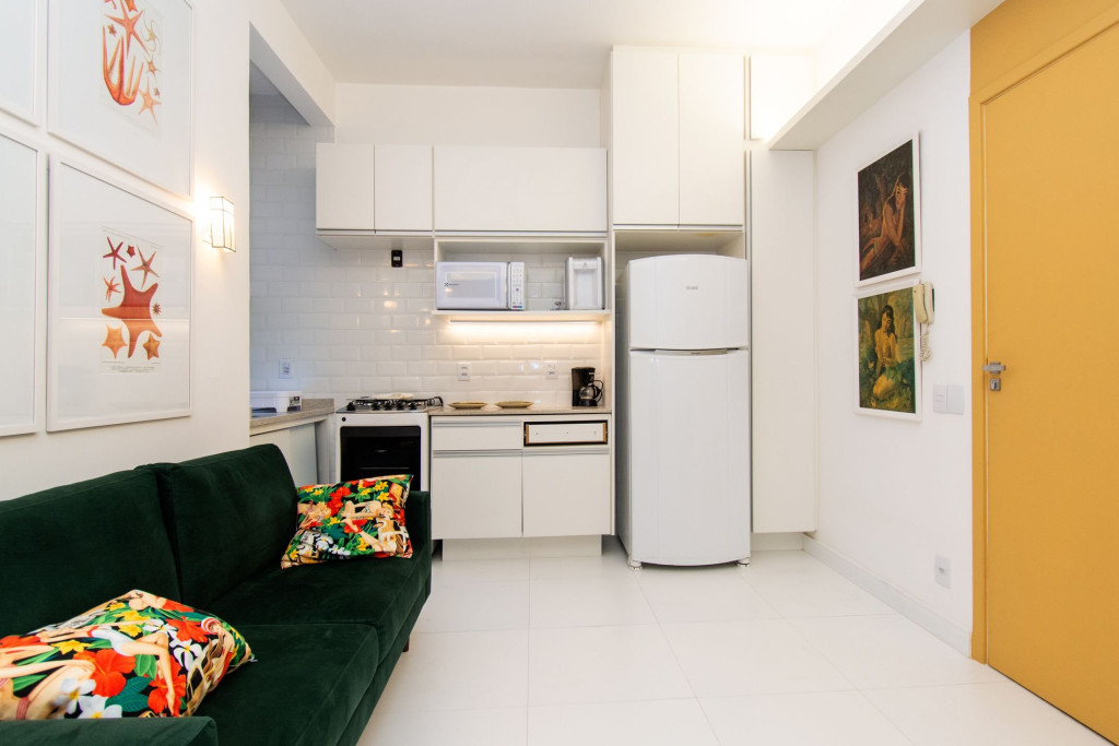 O apartamento é todo exclusivamente seu durante a reserva, com 1 cama de casal e 2 colchões de solteiro futons no bairro mais fervente do Rio, Copacabana! Além disso, conte com: