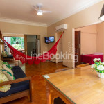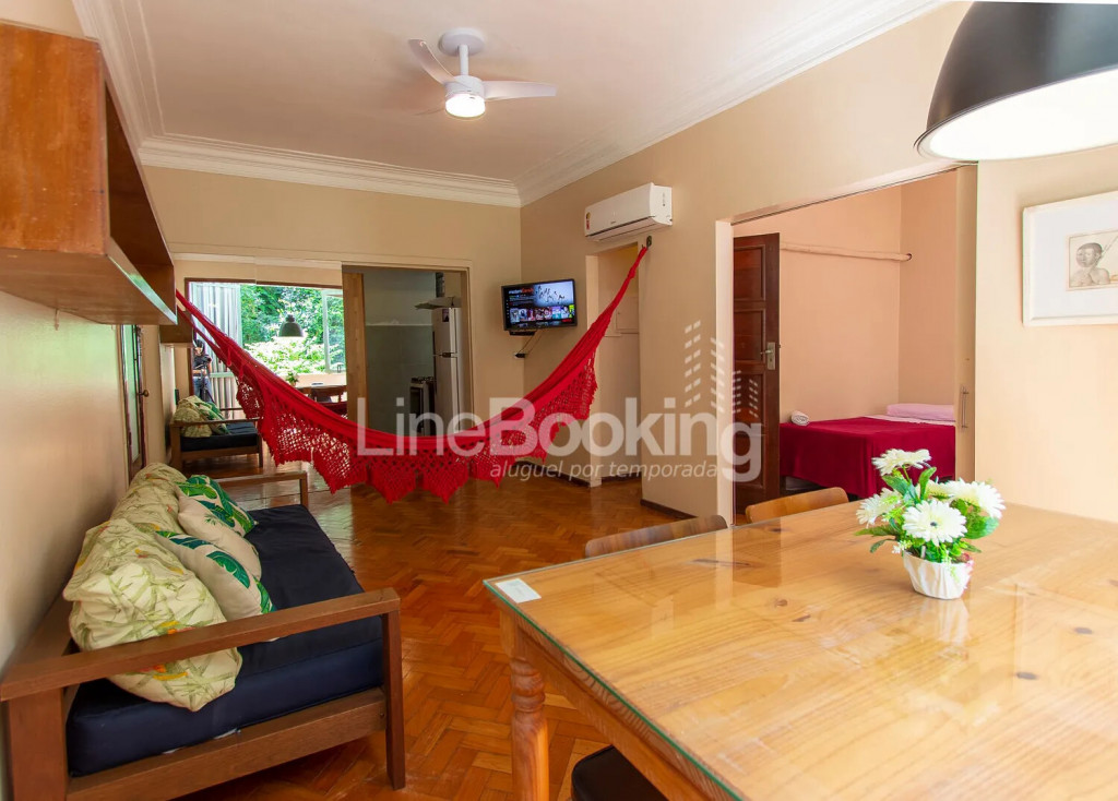 Sala: Ar condicionado, sofá, TV a cabo, rede e mesa 4 lugares