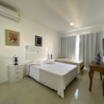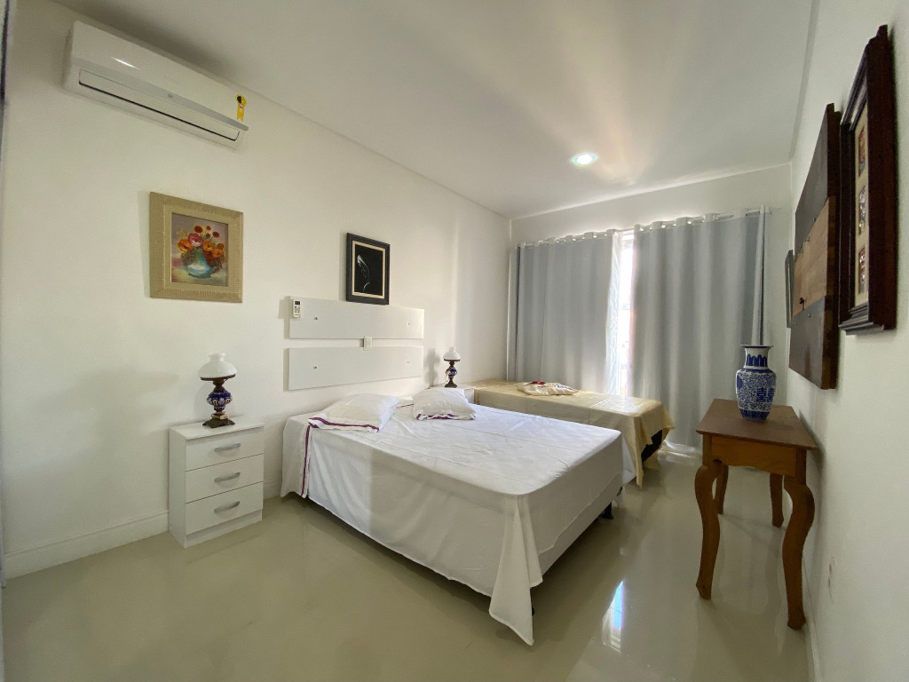 O apartamento 103 do Residencial Quinta do Sol acomoda até 07 pessoas (capacidade máxima incluindo crianças de qualquer idade) em 03 quartos, sendo uma suíte, todos com cama de casal. O imóvel disponibiliza para os hóspedes 01 colchão de solteiro e ar condicionado em todos os ambientes. O imóvel possui cozinha completa e equipada (Solicite inventário completo do imóvel), área de serviço, sala de estar e jantar, banheiro social, sacada com churrasqueira e linda vista para a praia de Porto Belo.