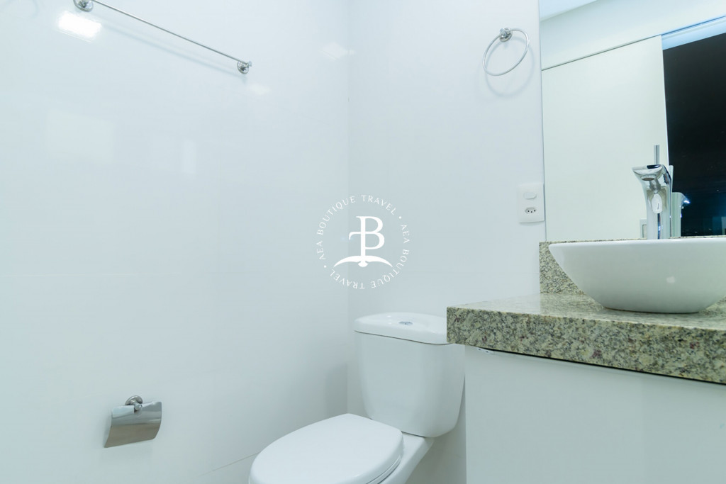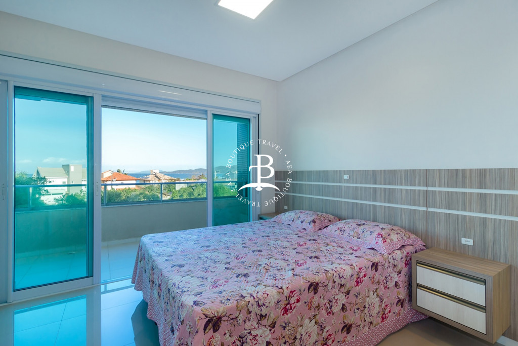 Configuração dos quartos, todos com ar condicionado: Quarto 1: suíte com 1 cama de casal tamanho ‘king’ e varanda. Quarto 2: suíte com 1 cama de casal tamanho ‘king’. Quarto 3: suíte com 1 cama de casal tamanho ‘king, 01 (cama) solteiro e varanda. O imóvel comporta 7 pessoas em camas e 1 criança em colchão extra, sem custo como cortesia.