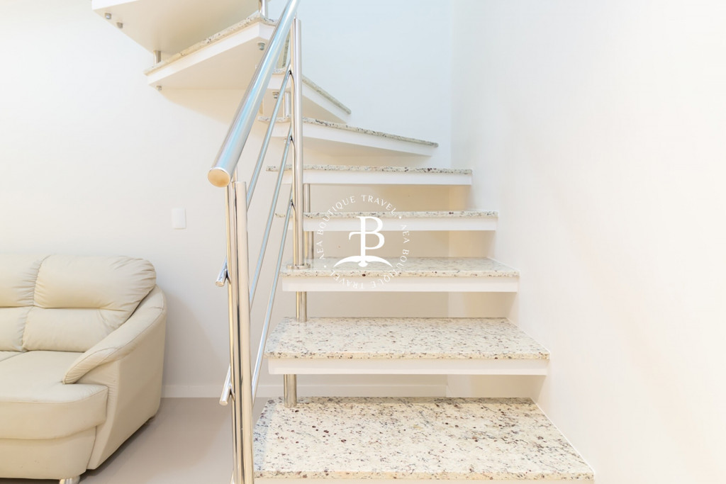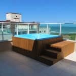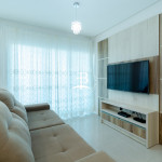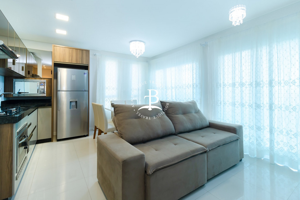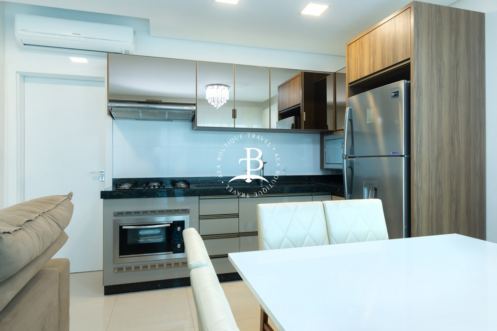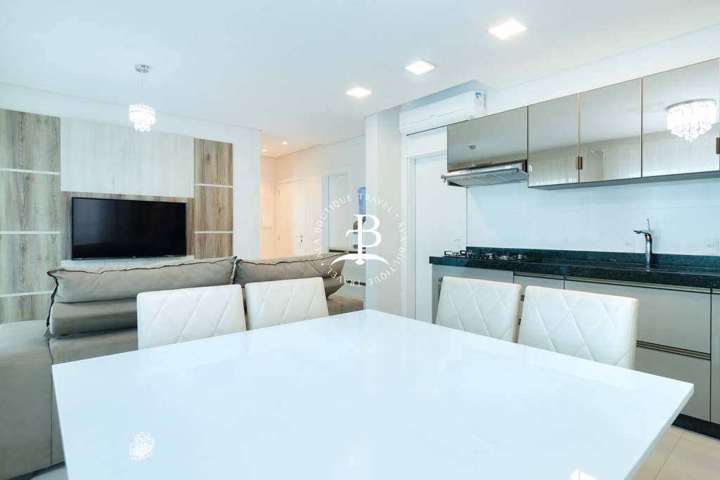Em seu terraço desfrute ao máximo de um Spa | Jacúzzi privativo com churrasqueira, a passos do mar! este apartamento possui vista para o mar, todo completo e com toda privacidade que você procura para férias de verdade com sua família e amigos. Sua sala de estar com sofá aconchegante e TV ‘, integrada a sala de jantar e cozinha completa, dispõe de 1 lavabo e máquina de lavar roupas.