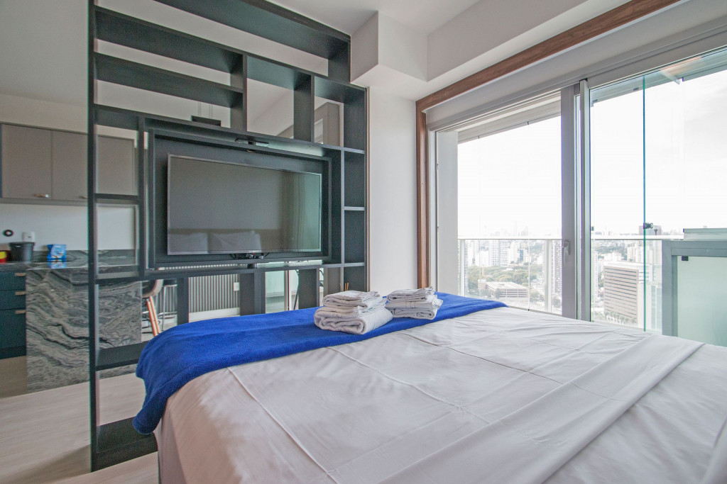 Mesmo com toda a cidade grande à frente dos seus hóspedes, o conforto e o silêncio são garantidos por vidros duplos na varanda e portas anti-ruído entre essa varanda e a sala/quarto.A vista 360 da cidade pode ser vista do 20º andar, onde a piscina e o fire-pit fazem cenário perfeitos para fotos a qualquer momento do dia.O apartamento está localizado próximo ao Jockey Club de São Paulo, a estação de metrô Butantã e com fácil acesso a Marginal Pinheiros.Esse apartamento possui uma vaga de garagem.
