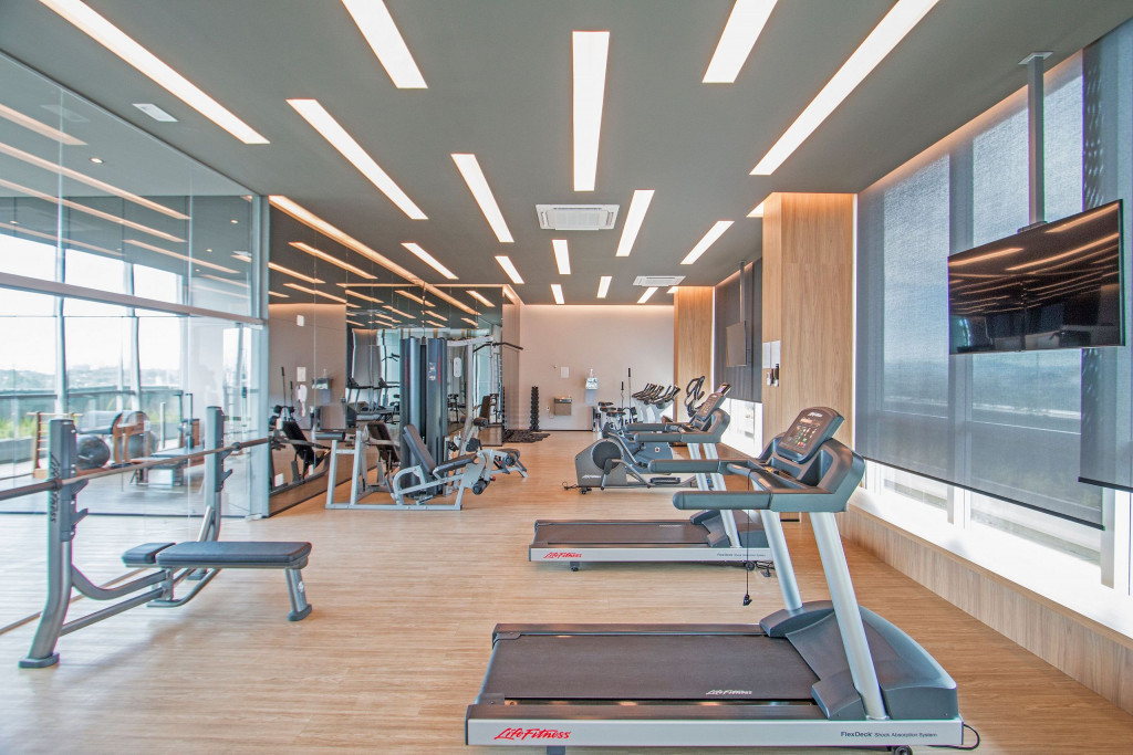- Academia localizada no 20º andar (Funcionamento: 24 horas);