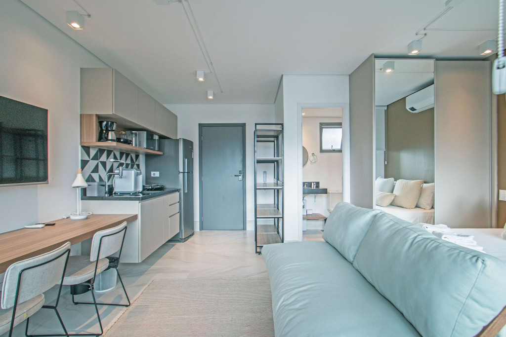 Nesse apartamento, você contará com: ENXOVAL completo (Travesseiro, manta, jogo de lençol, toalha de banho, toalha de rosto e toalha de piso)