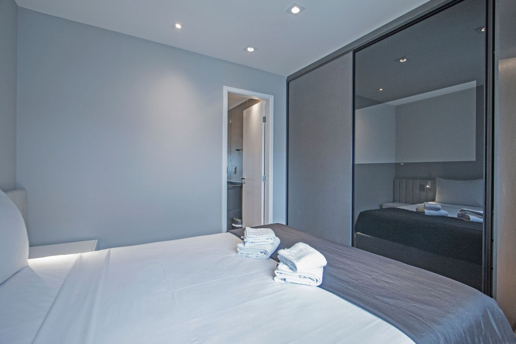 Nesse apartamento, você contará com: duas camas de casal; duas camas de solteiro; varanda; cozinha completa equipada com cooktop, geladeira, microondas, forno, lava louças e utensílios básicos; cafeteira de cápsula (As cápsulas não estão inclusas); tostadeira; TV; ar condicionado; WI-FI; Enxoval completo (Obs.: Não há troca de enxoval, porém a mesma pode ser solicitada mediante um custo adicional);