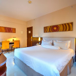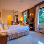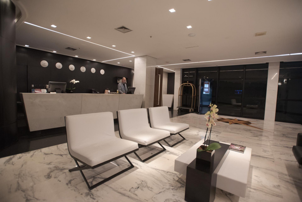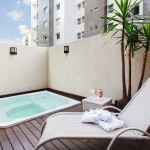 Nesse apartamento, você contará com: cama de casal; ar condicionado; telefone; TV a cabo LCD 42'; WI-FI; cofre eletrônico; vedação acústica nas janelas; enxoval de banho Troussardi.