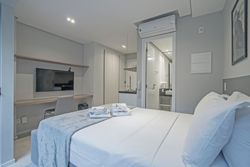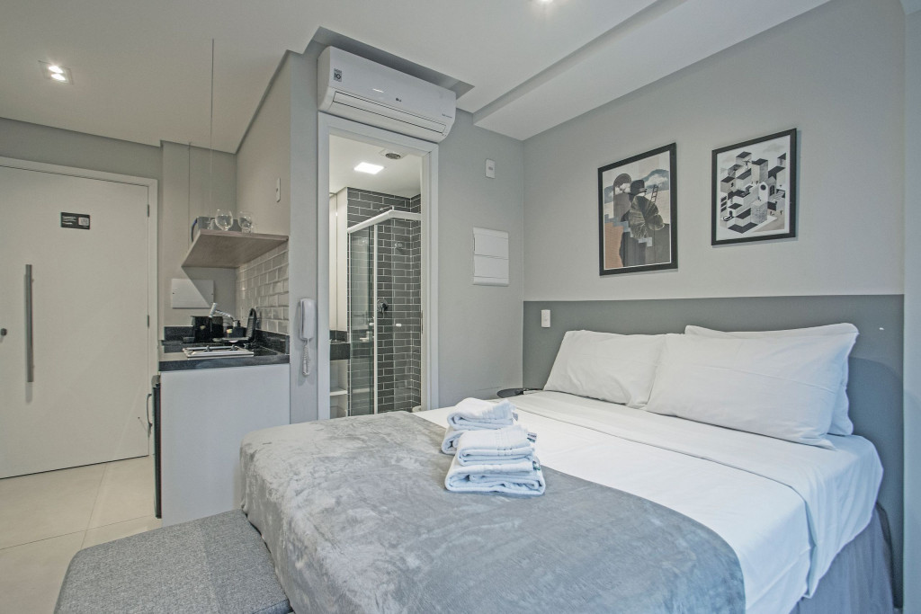 Nesse apartamento, você contará com: ENXOVAL completo (Travesseiro, manta, jogo de lençol, toalha de banho, toalha de rosto e toalha de piso)
