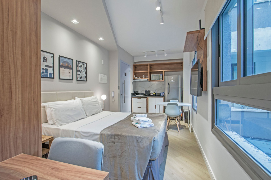 Nesse apartamento, você contará com: ENXOVAL completo (Travesseiro, manta, jogo de lençol, toalha de banho, toalha de rosto e toalha de piso)