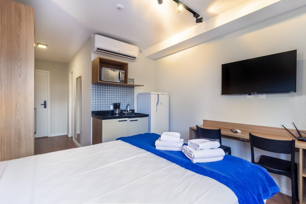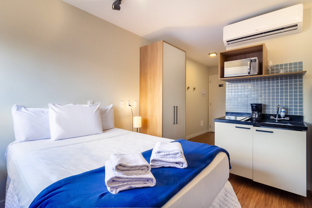Nesse apartamento, você contará com: ENXOVAL completo (Travesseiro, manta, jogo de lençol, toalha de banho, toalha de rosto e toalha de piso)
