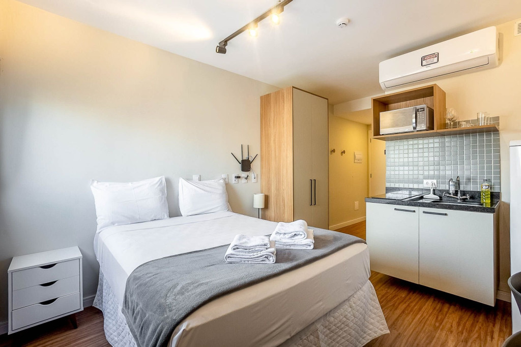 Nesse apartamento, você contará com: ENXOVAL completo (Travesseiro, manta, jogo de lençol, toalha de banho, toalha de rosto e toalha de piso)
