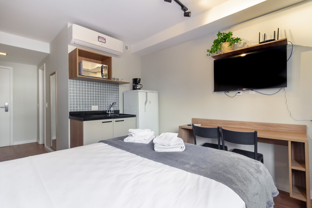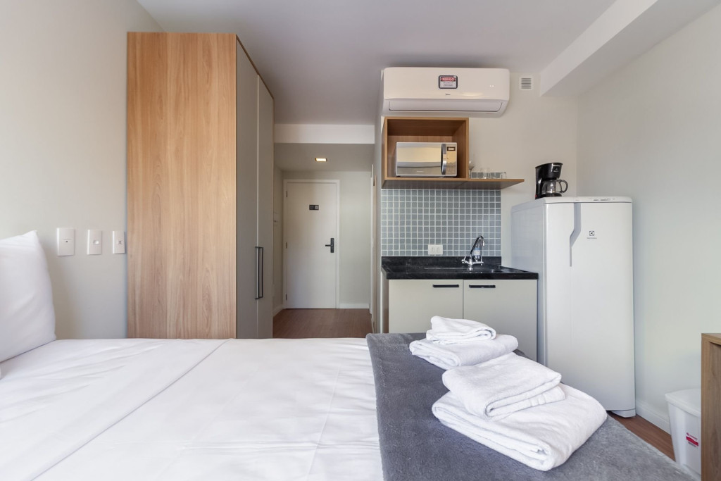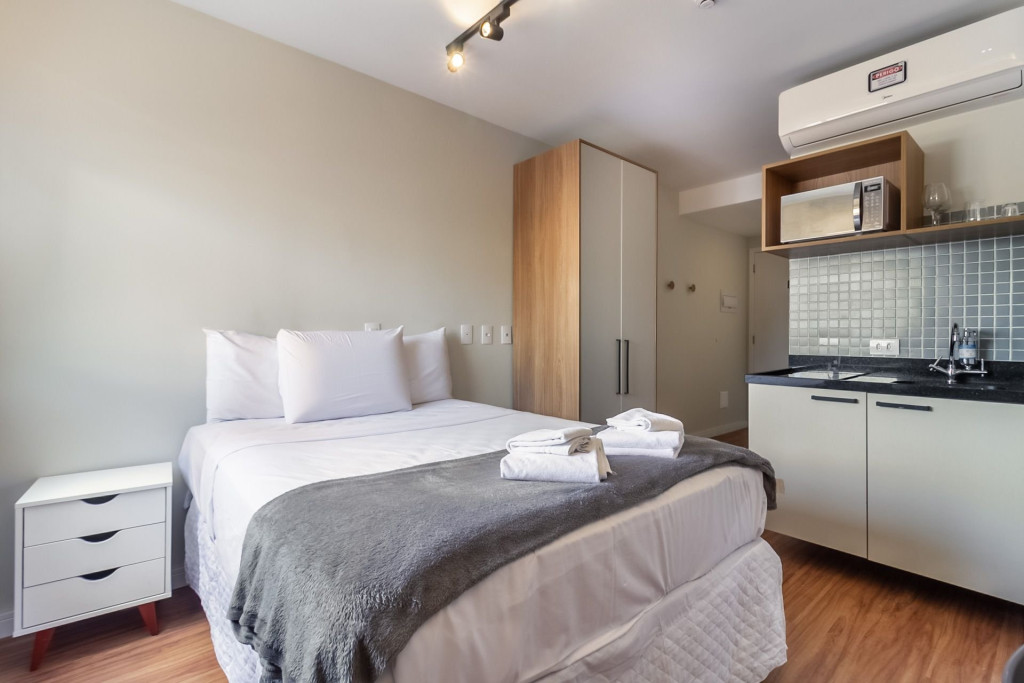 Nesse apartamento, você contará com: ENXOVAL completo (Travesseiro, manta, jogo de lençol, toalha de banho, toalha de rosto e toalha de piso)