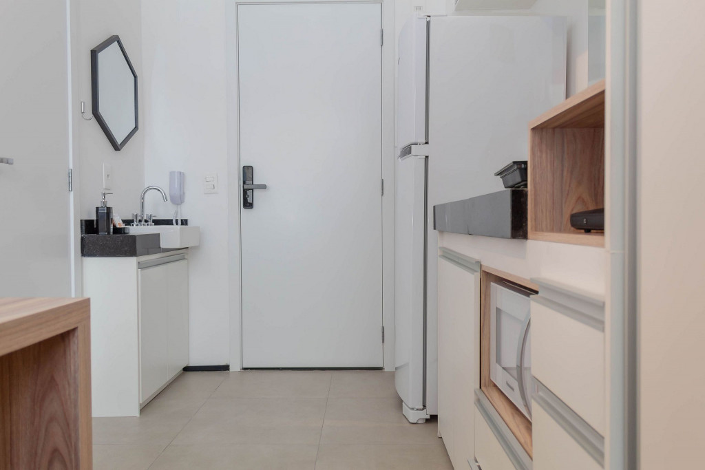 - Cozinha compartilhada localizada no 4º andar (Para utilização, é necessário solicitar o agendamento ao nosso time de atendimento e há cobrança de R$63,00, tendo direto a no máximo 3 horas de utilização).