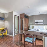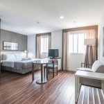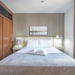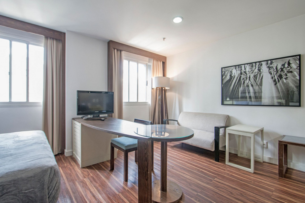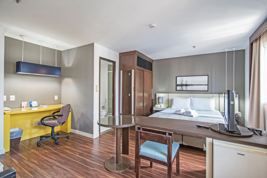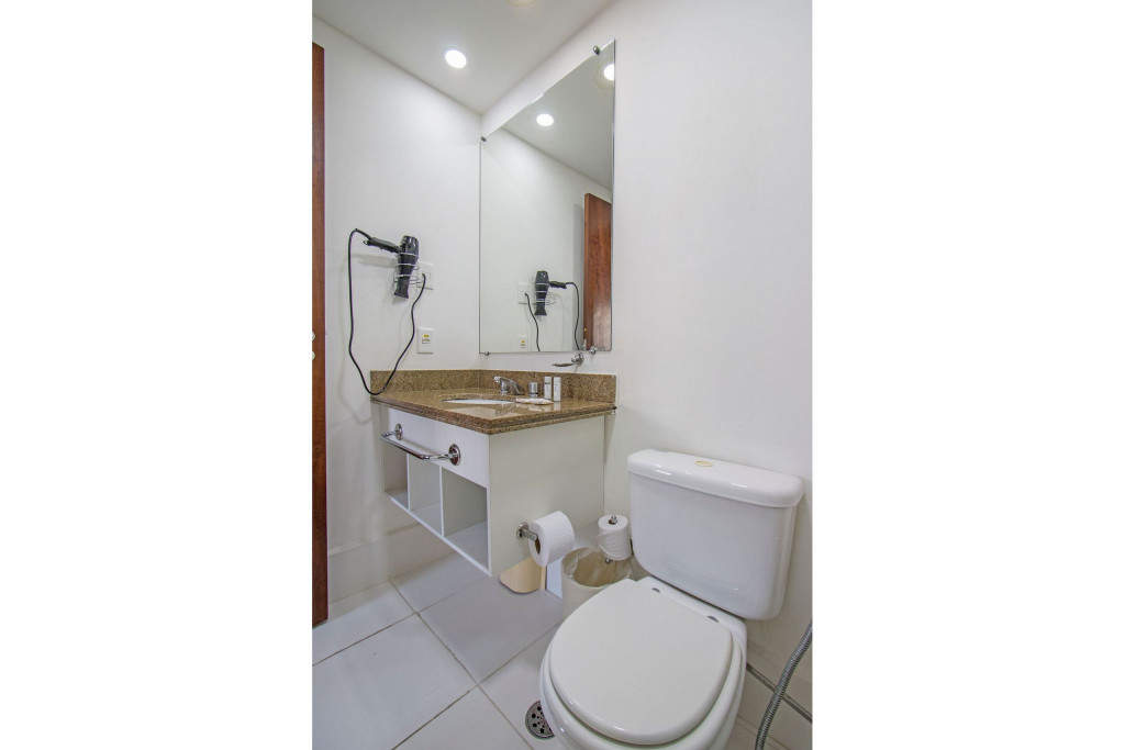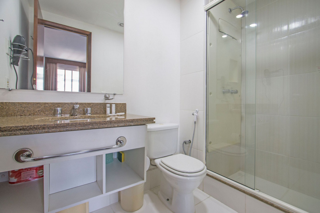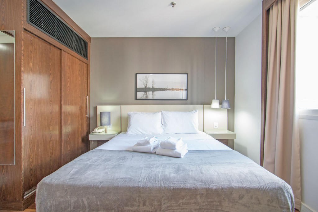 Nesse apartamento, você contará com: cama de casal; sofá; frigobar; secador de cabelo; TV com canais a cabo; ar condicionado; WI-FI; cortina blackout; Enxoval completo (4 travesseiros, 1 manta, 1 cobertor, 1 jogo de lençol, 2 toalhas de banho, 2 toalhas de rosto e 1 toalha de piso) - Obs.: Não há troca de enxoval, porém a mesma pode ser solicitada mediante um custo adicional;