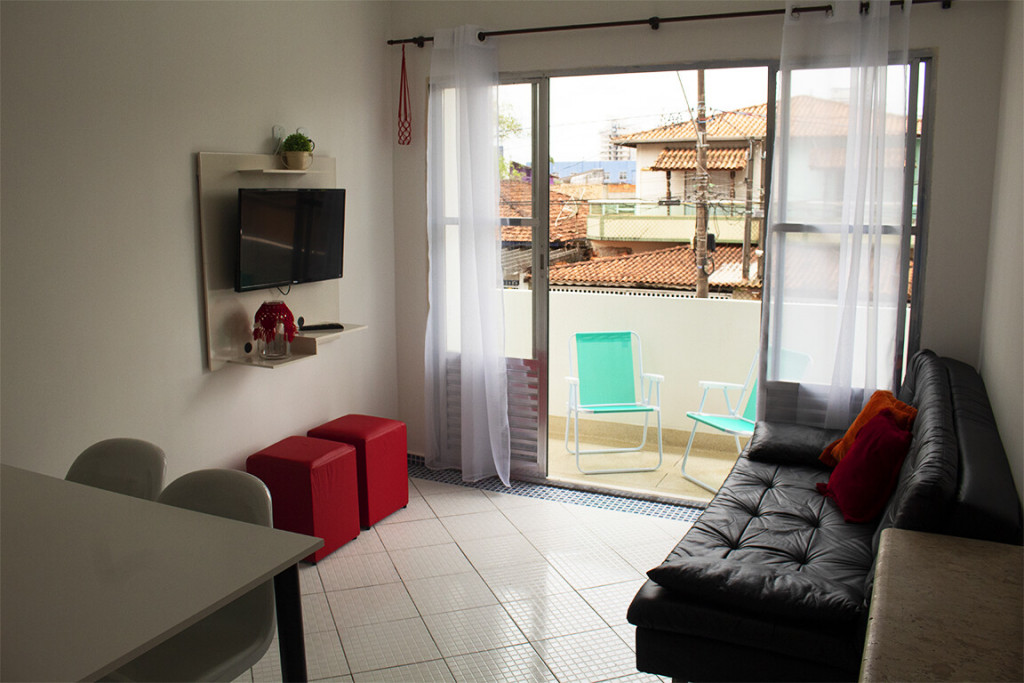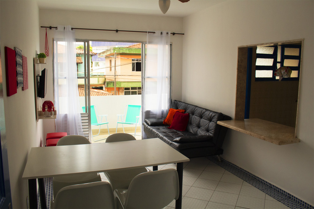 O apto. 103 é super confortável para uma famíia de até 4 pessoas. Fica no primeiro andar, de frente. O prédio fica a 50m da praia e você vai encontrar cadeiras e guarda sol à sua disposição. Tem ar condicionado no quarto e ventilador de teto na sala, TV com canais abertos, Wi-Fi, varanda, vaga na garagem e cozinha bem equipada.