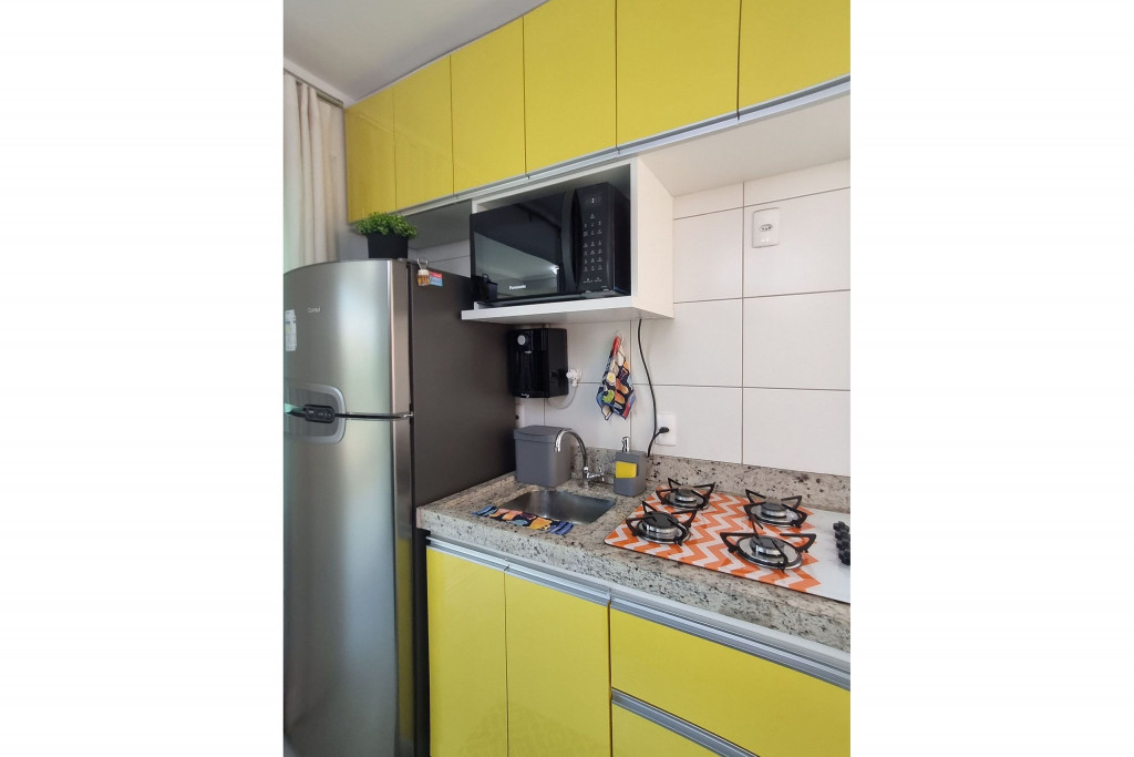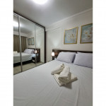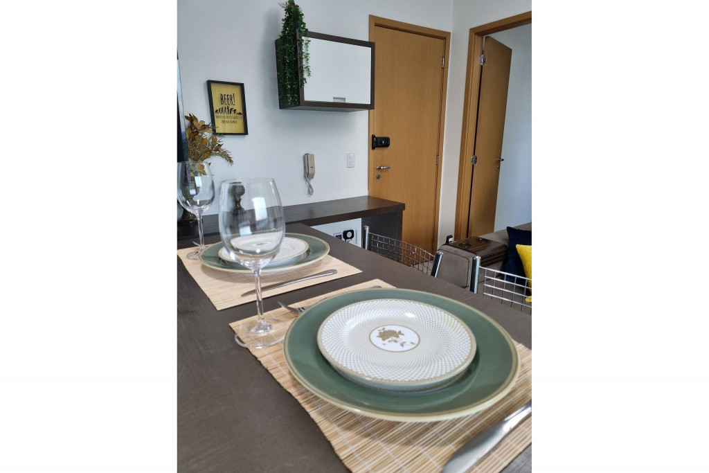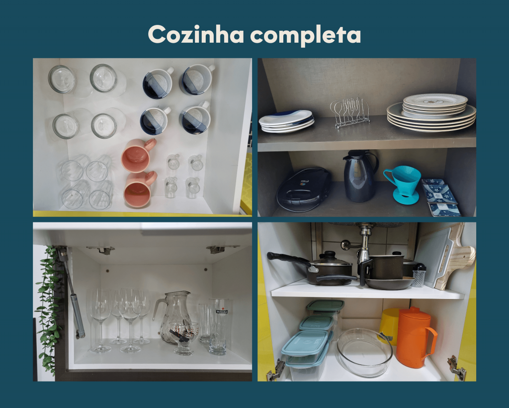 Totalmente exclusivo ao hóspede, o apto conta com uma sala com TV e um confortável sofá. Cozinha completa com armários e diversos utensílios como: pratos, taças de vinho, panelas, talheres, kit de churrasco, etc. Quarto com cama de casal, ar condicionado, roupa de cama e travesseiros. Banheiro com todos os itens (shampoo, condicionador, sabonete, papel higiênico e toalhas). Uma excelente sacada gourmet com Grill e forno.